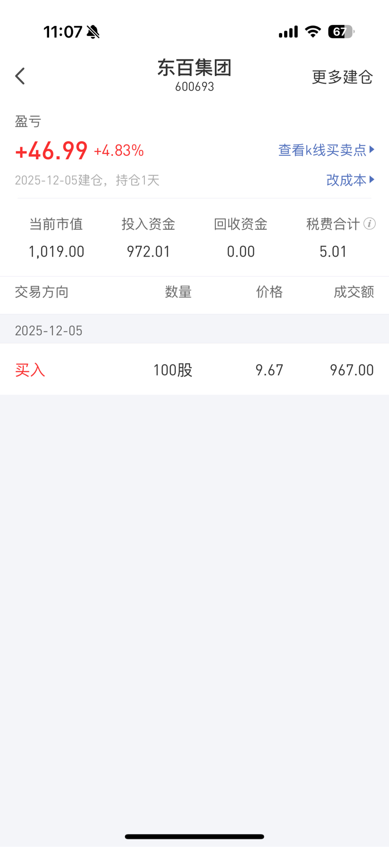 $东百集团(SH600693)$ 千元做到百万的第一天!
