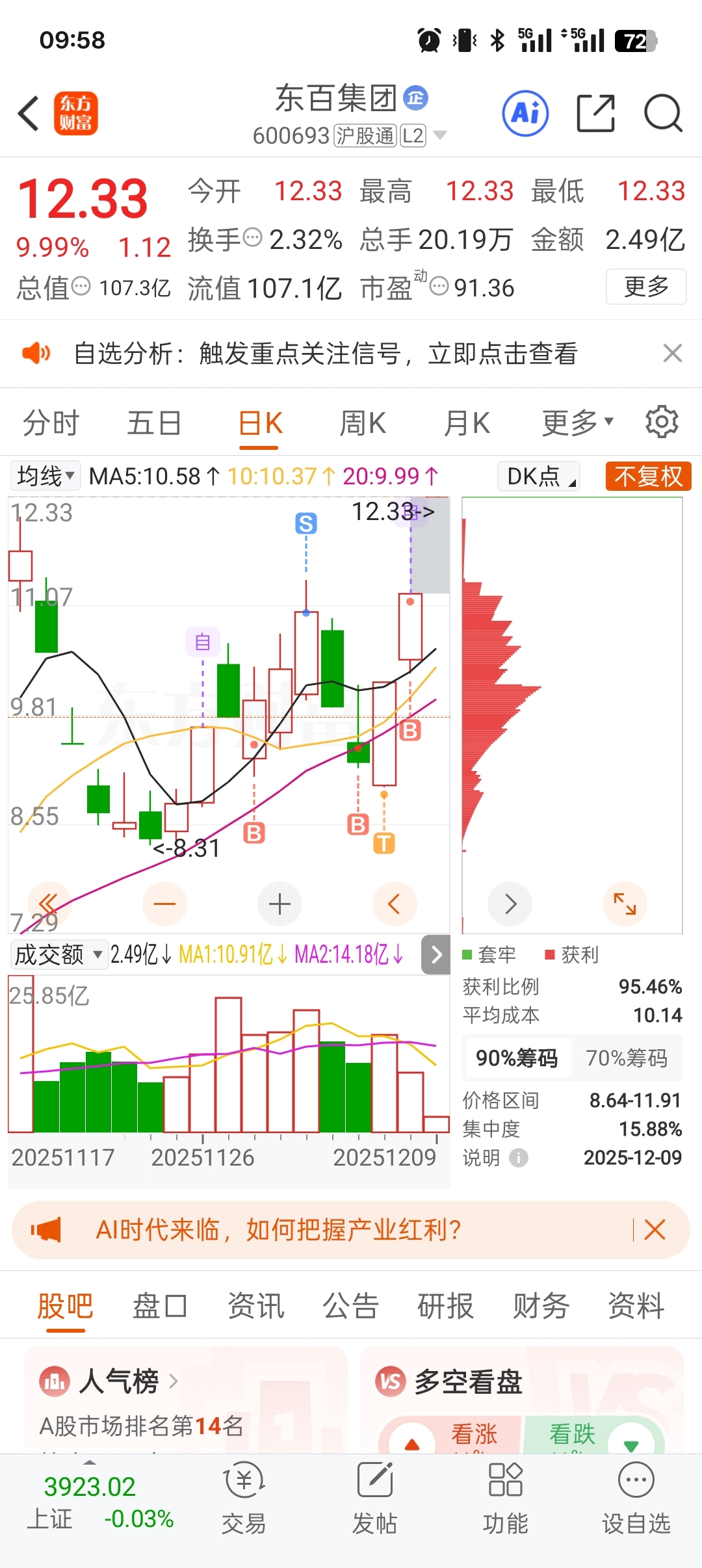 $东百集团(SH600693)$ 运气有点好