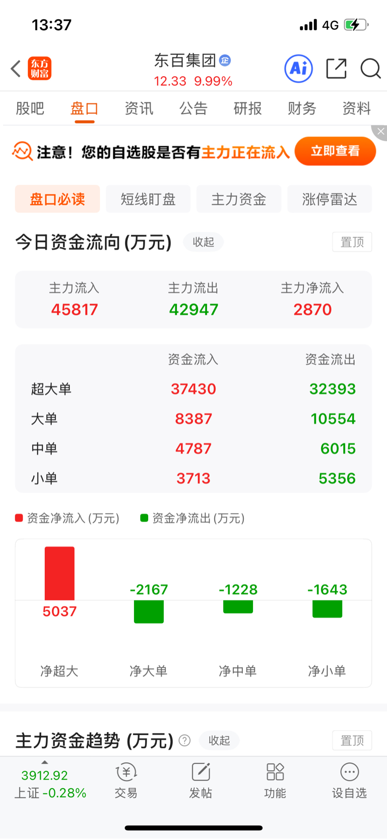 $东百集团(SH600693)$ 有人说筹码峰有问题啥的我倒是觉得正常,第一波然后洗盘把底部筹码洗走了很正常,但是今天这个资金流入流出确实有点说法,不知道是协议接盘还是换庄还是板上洗筹