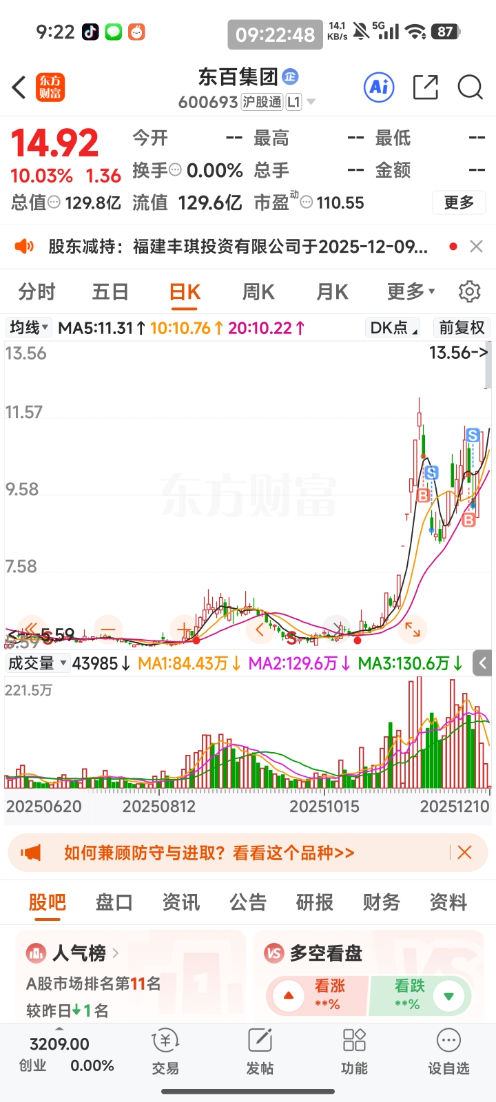 $东百集团(SH600693)$ 我恨啊 五个涨停板子没有了