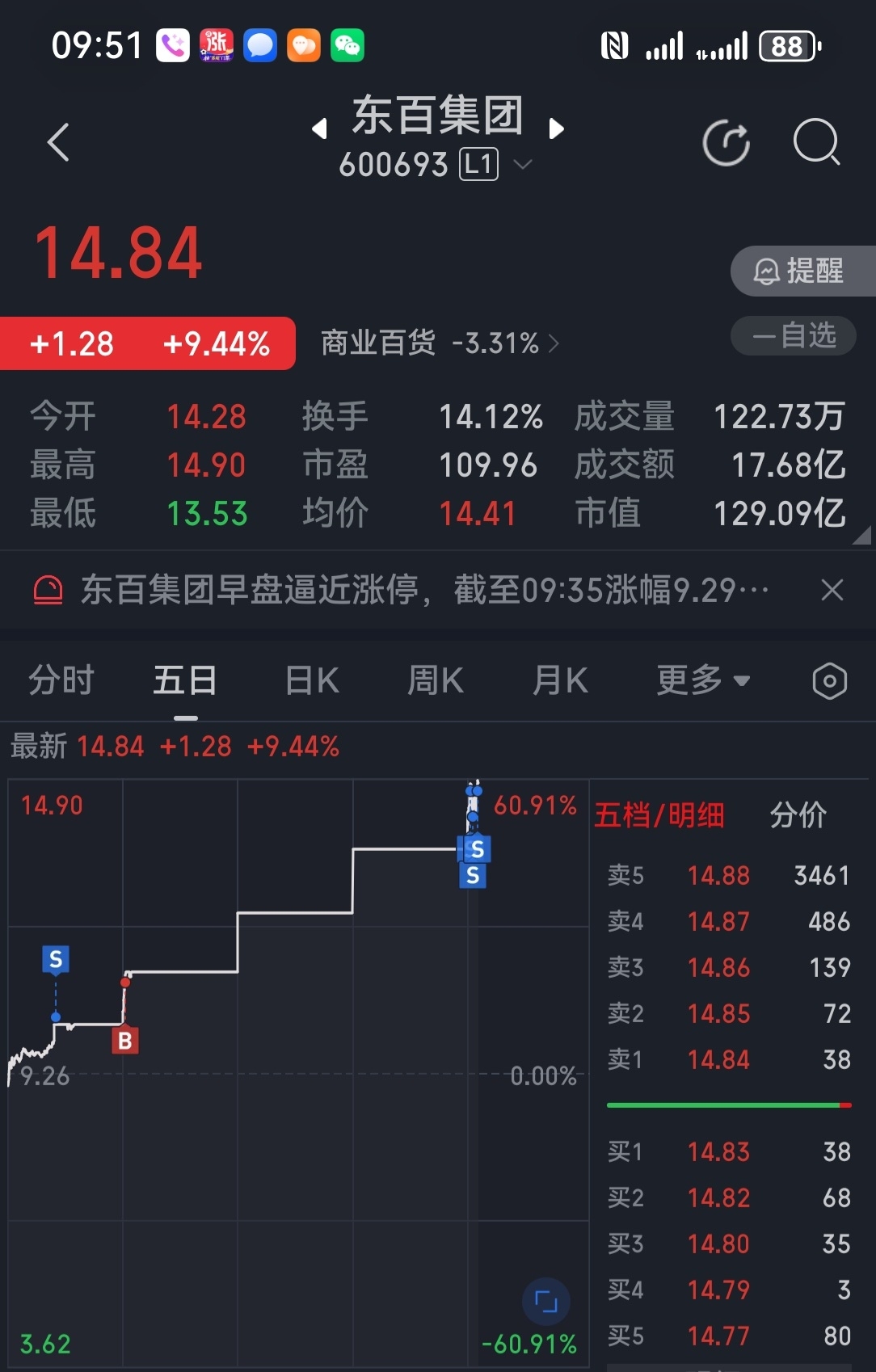 $东百集团(SH600693)$ 可能还会有一个板,但还是清仓了!