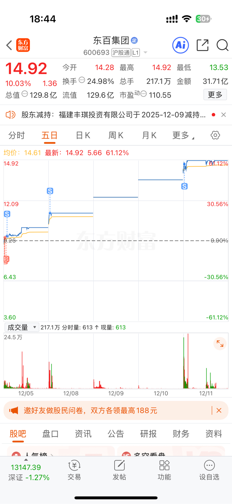 $东百集团(SH600693)$ 清仓了感谢东百 天天都赚钱