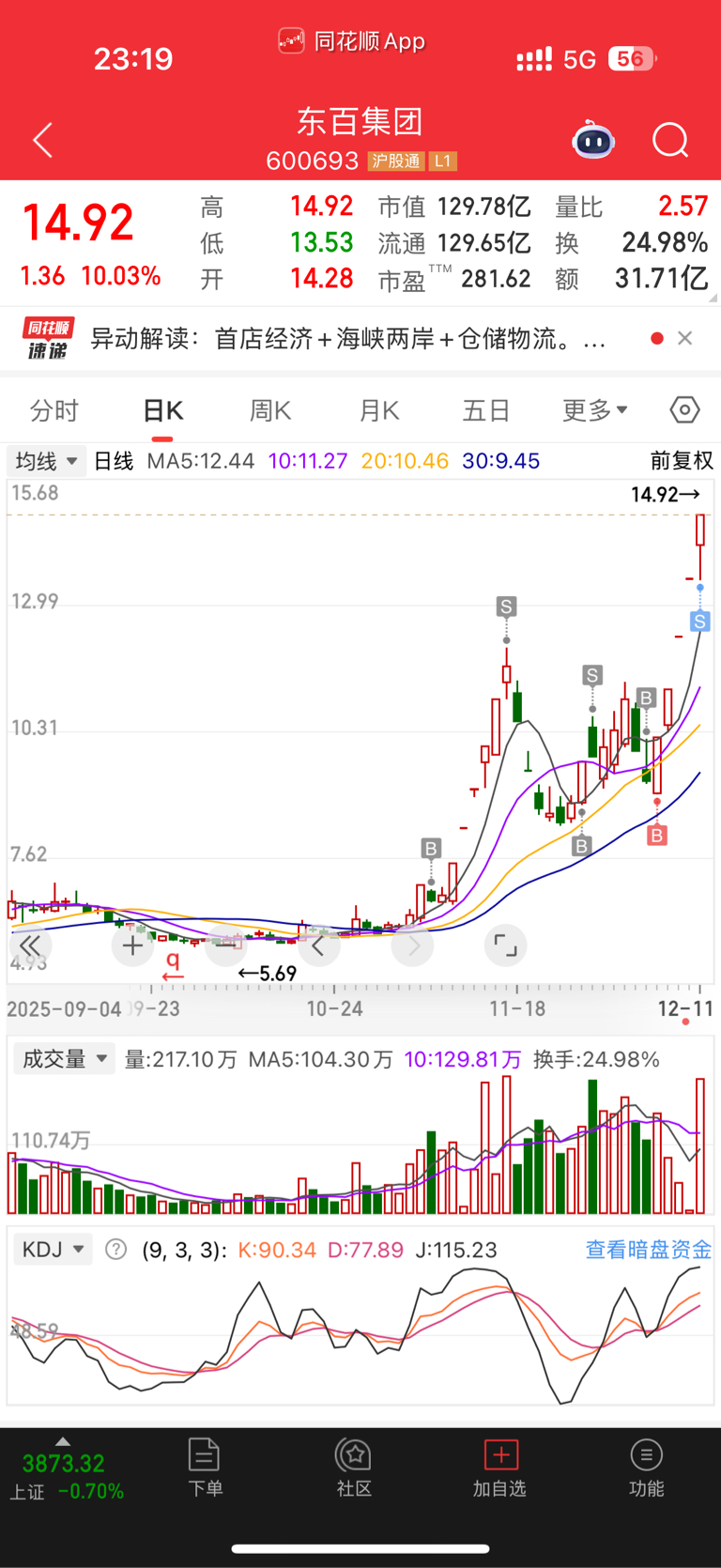 $东百集团(SH600693)$ 我今天8个点跑的 我把筹码给你们的兄弟们是真敢接,准备吃跌停,最少3个,别想走三波了,可能这支股票要套你10年,等下次牛市解套