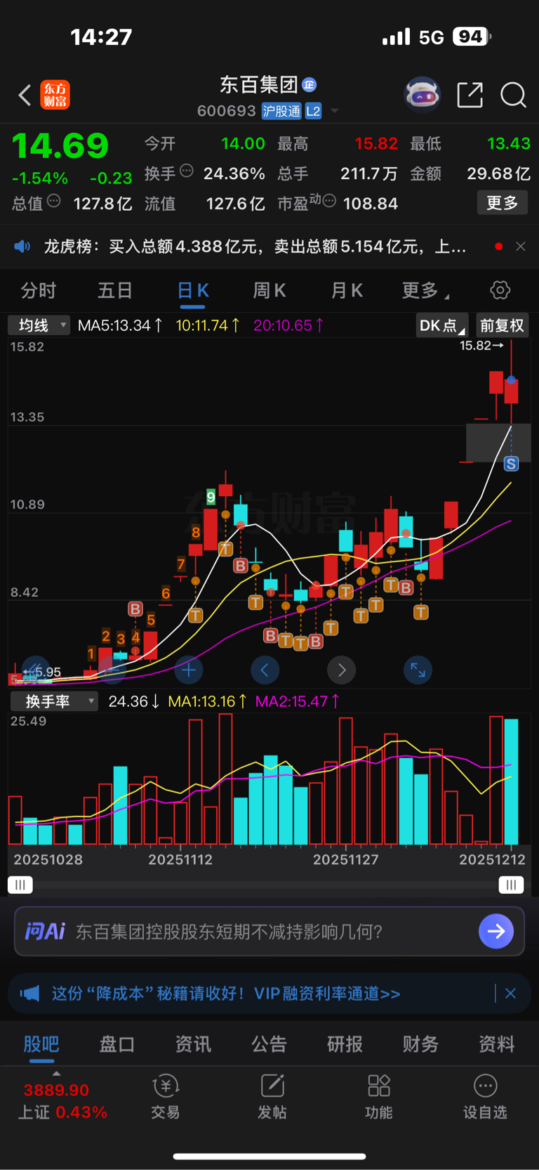 $东百集团(SH600693)$ 感谢大哥 让我翻倍走了