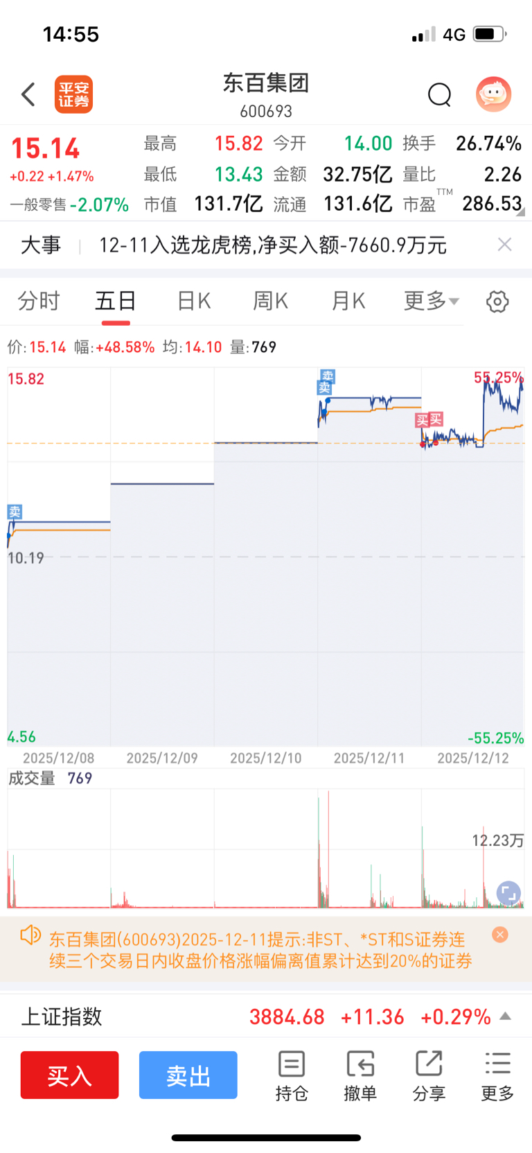 $东百集团(SH600693)$ #炒股日记# 昨天走的,今天又回去了,还好,,