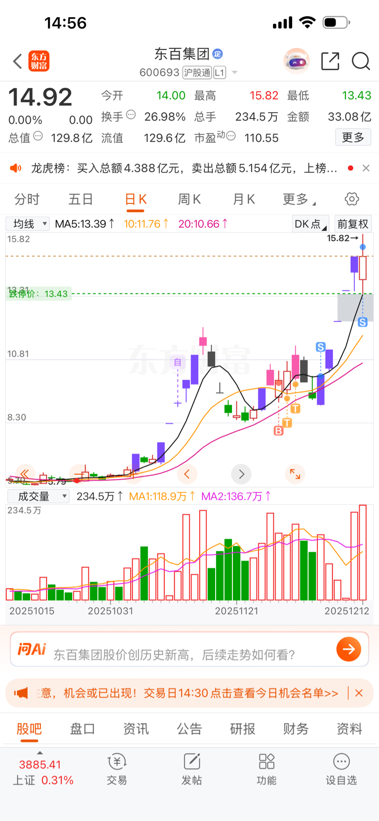 $东百集团(SH600693)$ 走了,不跟你玩了,80%也够了