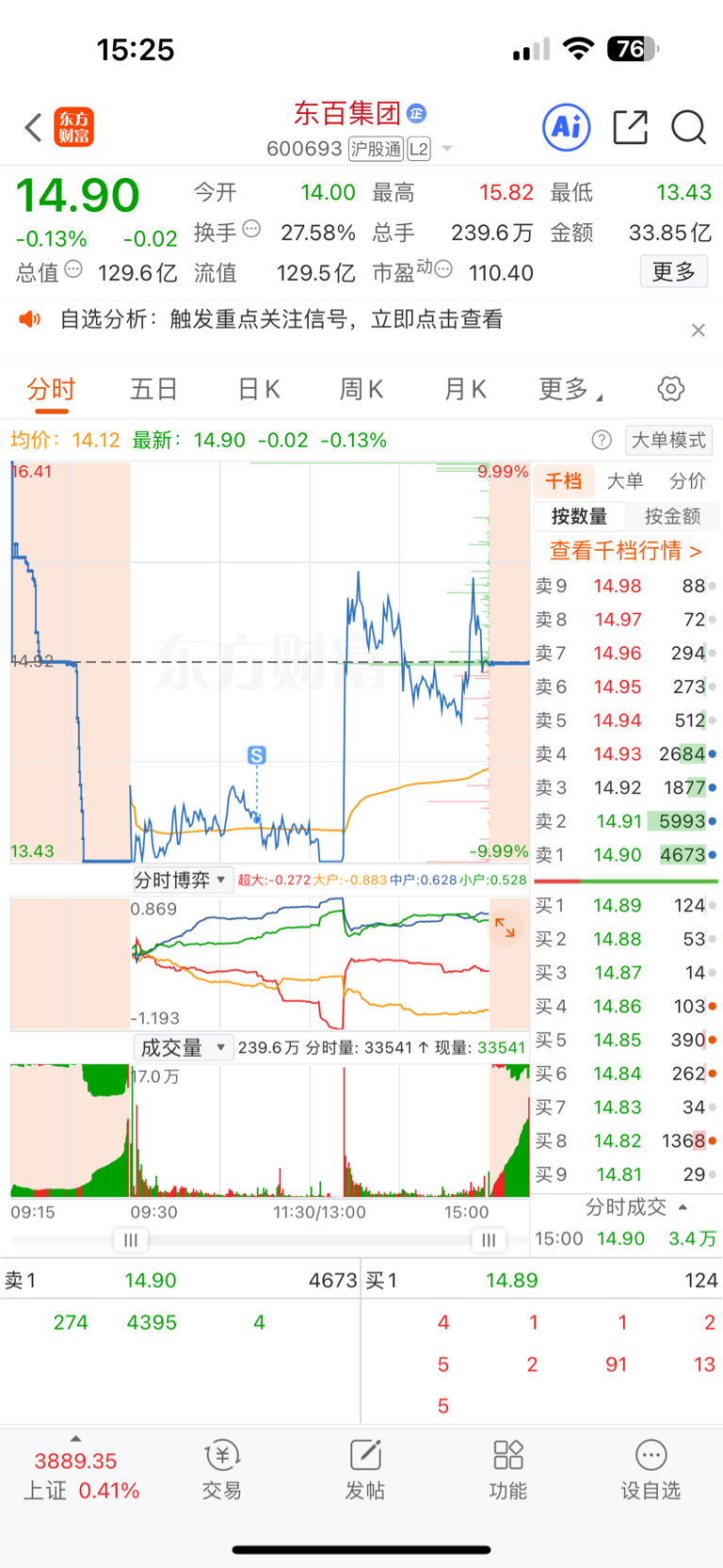 $东百集团(SH600693)$ 今天的操作真是失败