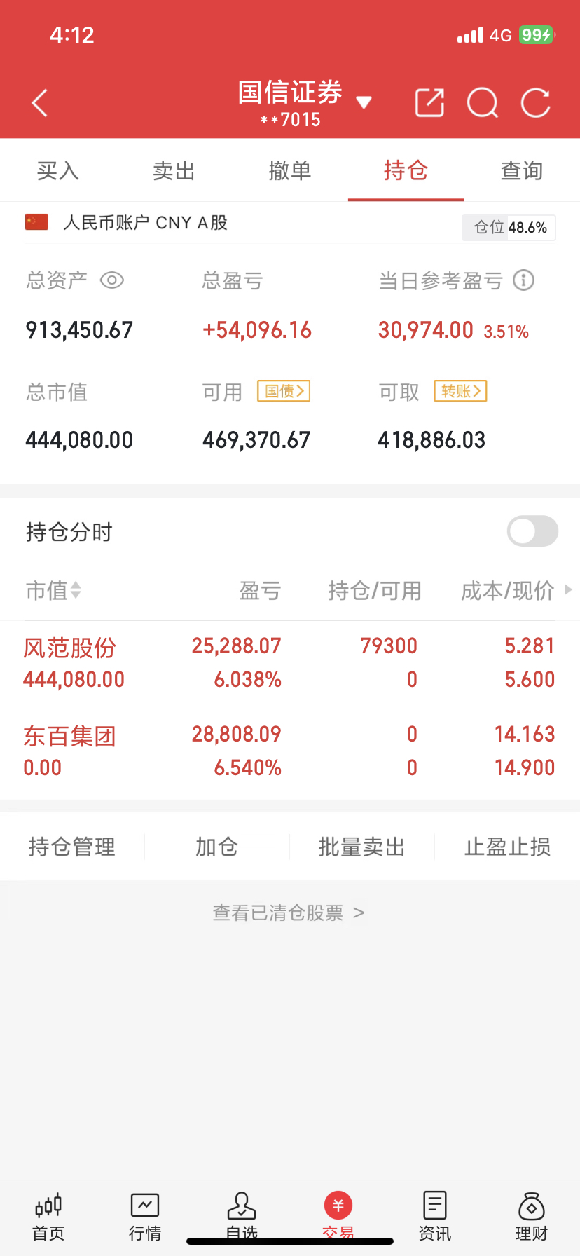 $东百集团(SH600693)$ 今日开盘走势剧烈震荡,呈现先跌停后反弹的态势,最终还是选择出手、虽然没吃到大肉但蚊子腿也是肉啊。先落袋为安走了、祝各位股友一路长红、周末愉快
