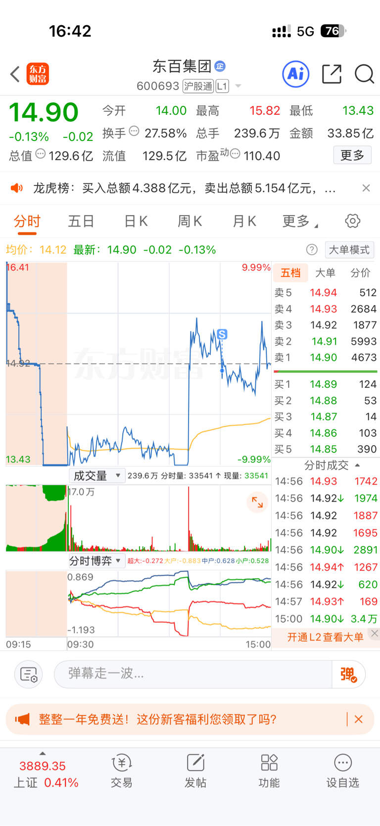 $东百集团(SH600693)$ 不贪不贪了
