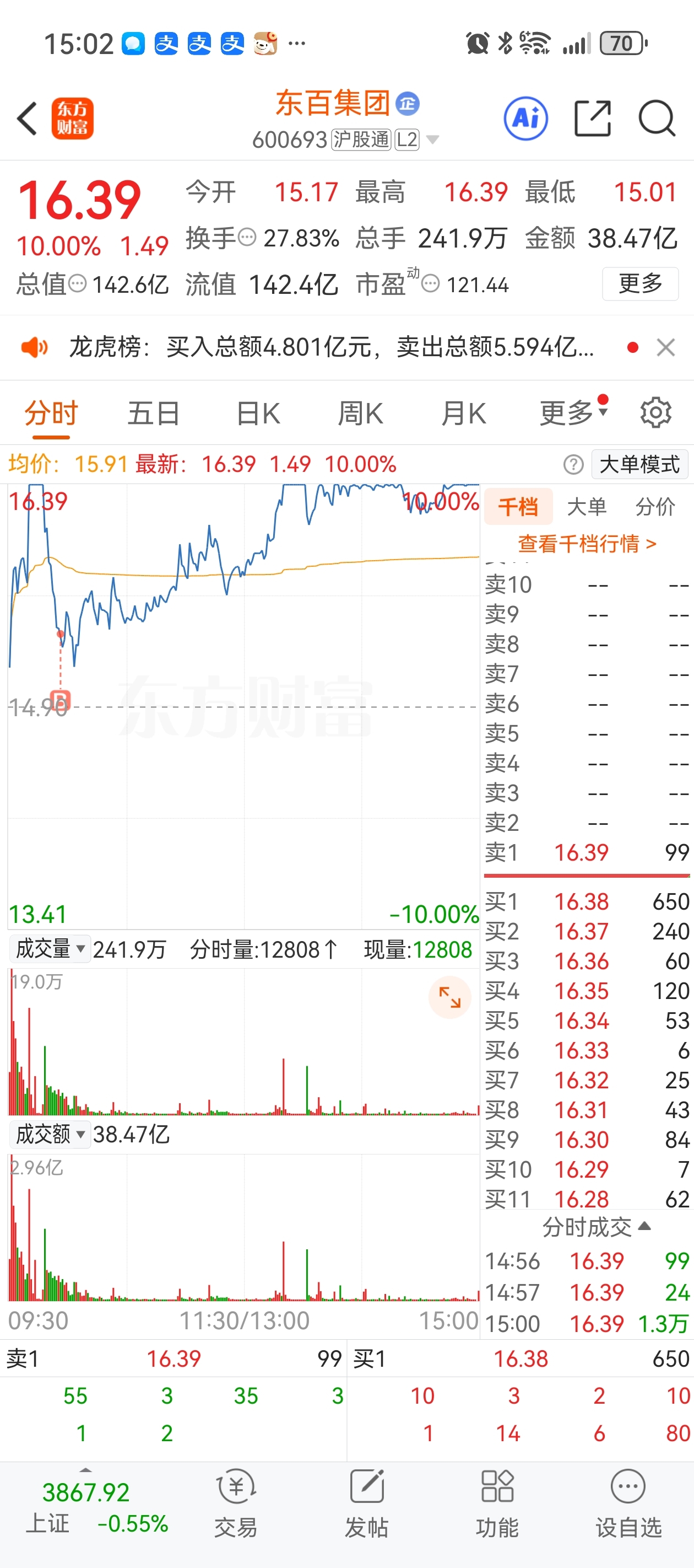 $东百集团(SH600693)$ 烂板,明天板块还能持续吗?