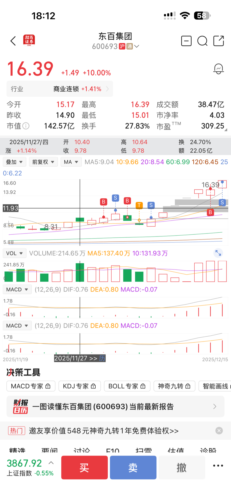 $东百集团(SH600693)$ 真的是没有连板的命,看了龙虎榜,感觉又一次卖飞了