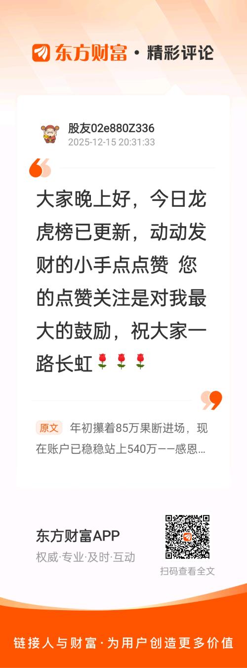 $东百集团(SH600693)$好//@股友02e880Z336 :大家晚上好,今日龙虎榜已更新,动动发财的小手点点赞 您的点赞关注是对我最大的鼓励,祝大家一路长虹