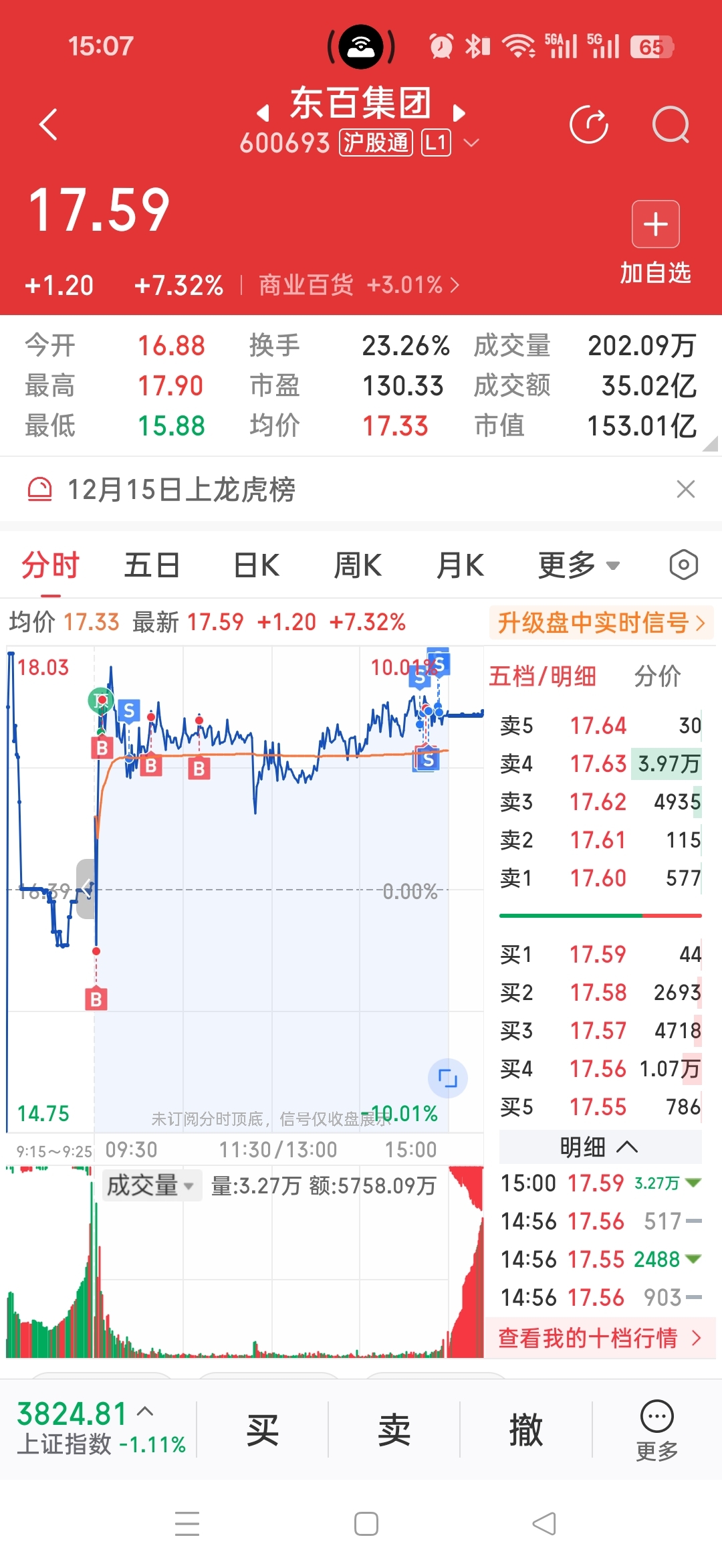 $东百集团(SH600693)$ 越王大道应该走了,陈小群可能做t减仓,今天从最低点到收盘也基本一个板了。