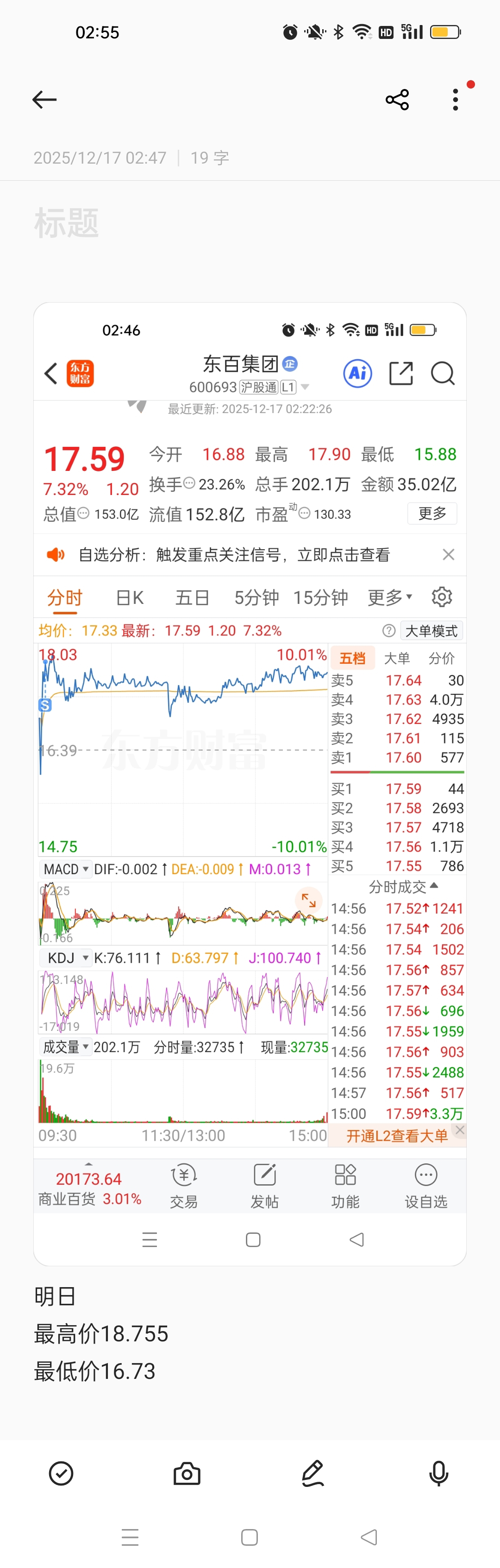 $东百集团(SH600693)$ 预测明日最高价和最低价