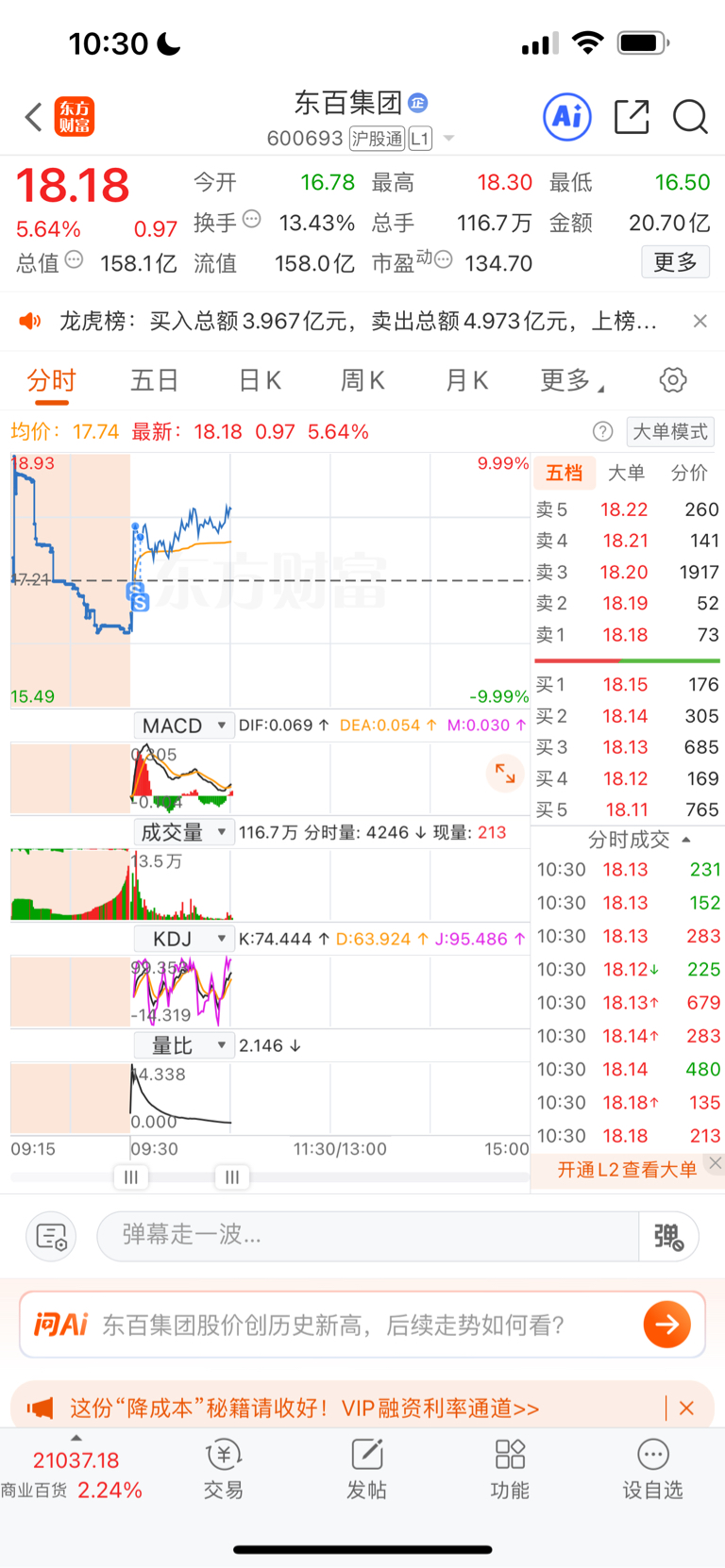 $东百集团(SH600693)$ 虽然卖了,希望你涨停,留下的兄弟们发财