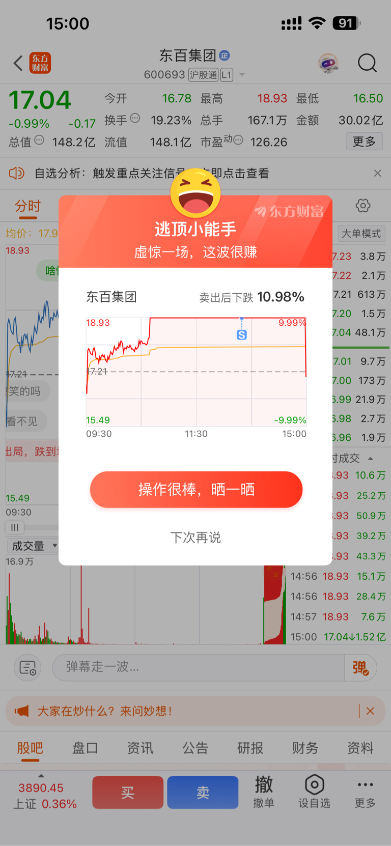 很庆幸我克服了贪婪涨停扯单我感觉到不太对当时不太确定,但是有句话说的好宁愿错过不