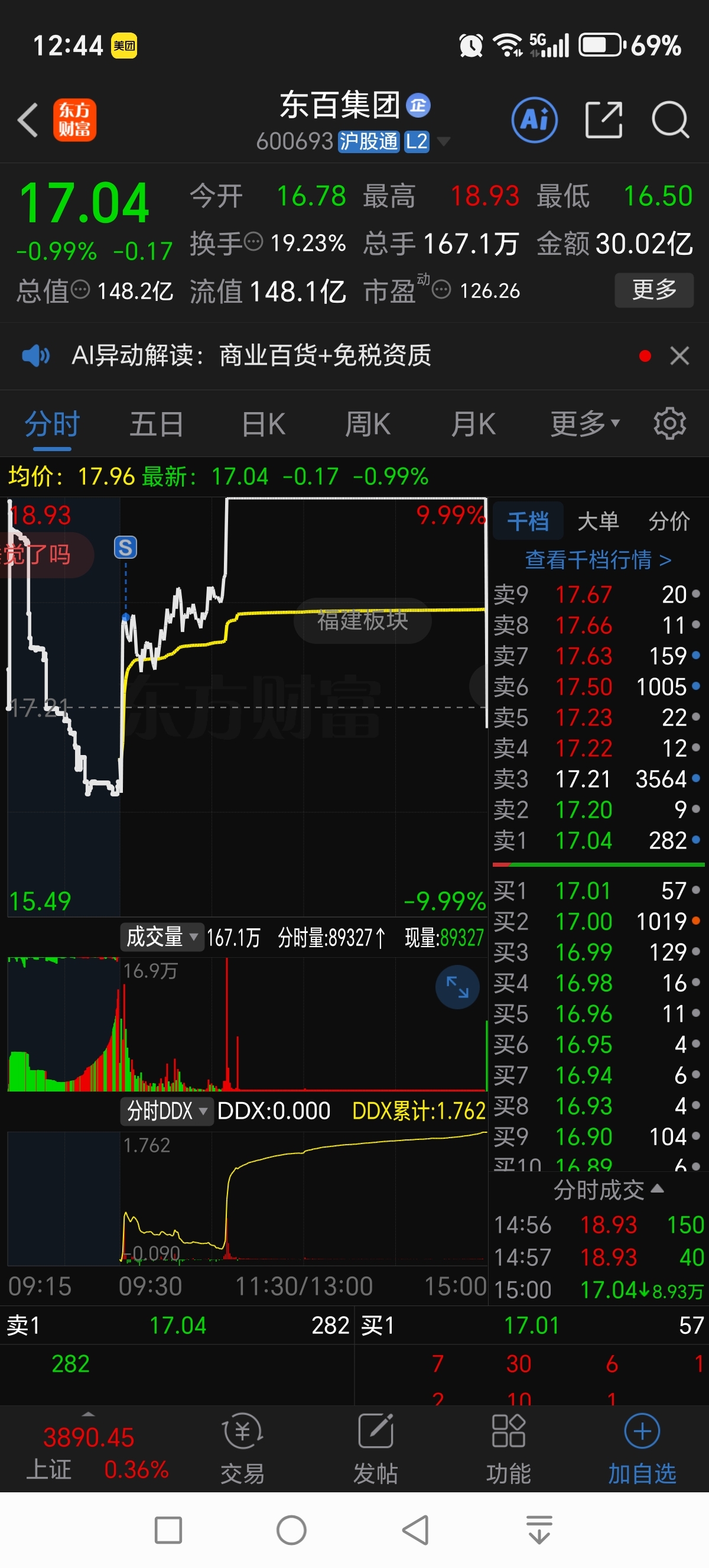$东百集团(SH600693)$ 上午还后悔,收盘惊一身冷汗