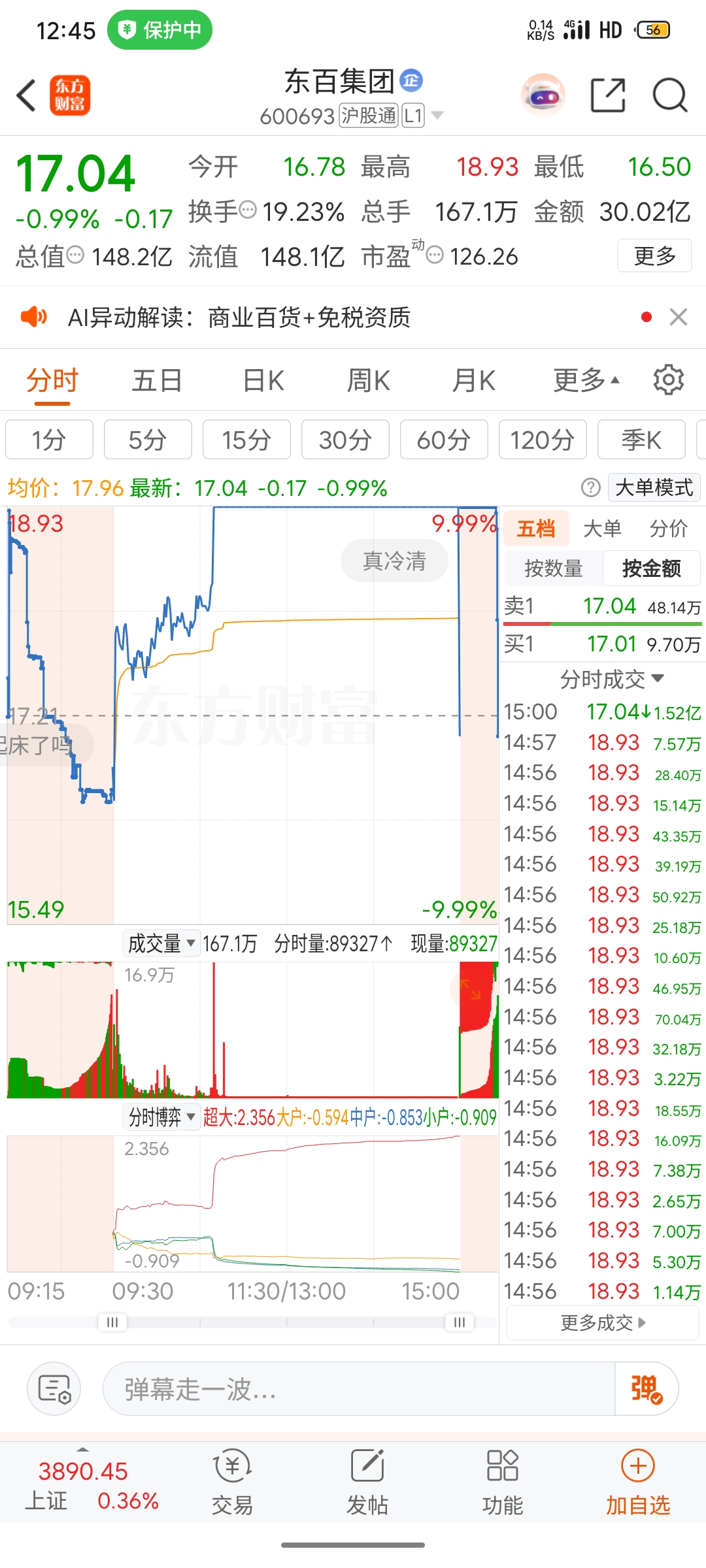 $东百集团(SH600693)$ 为什么尾盘有两根直线啊?不懂