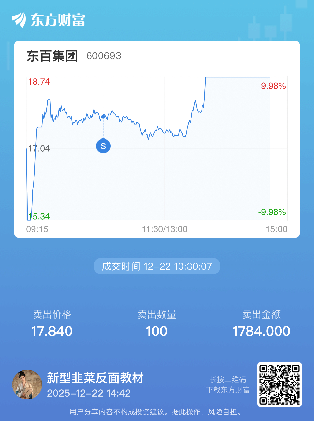 $东百集团(SH600693)$ 亏本几块钱卖飞了
