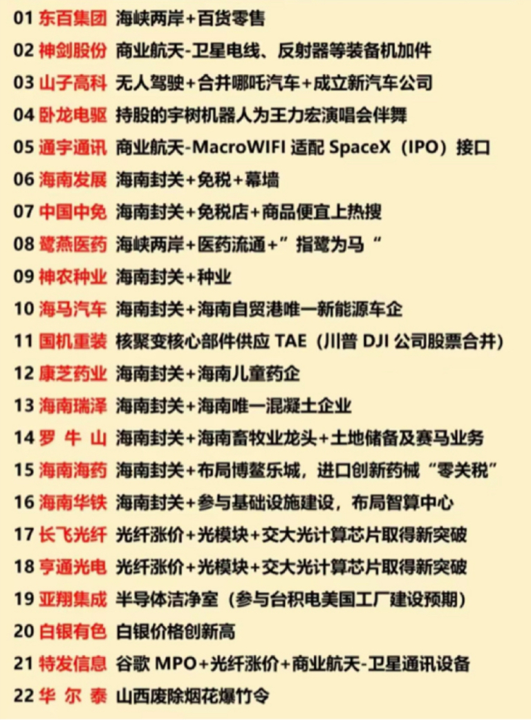 海南板块领涨全场,掀起涨停潮,细分主线如下: