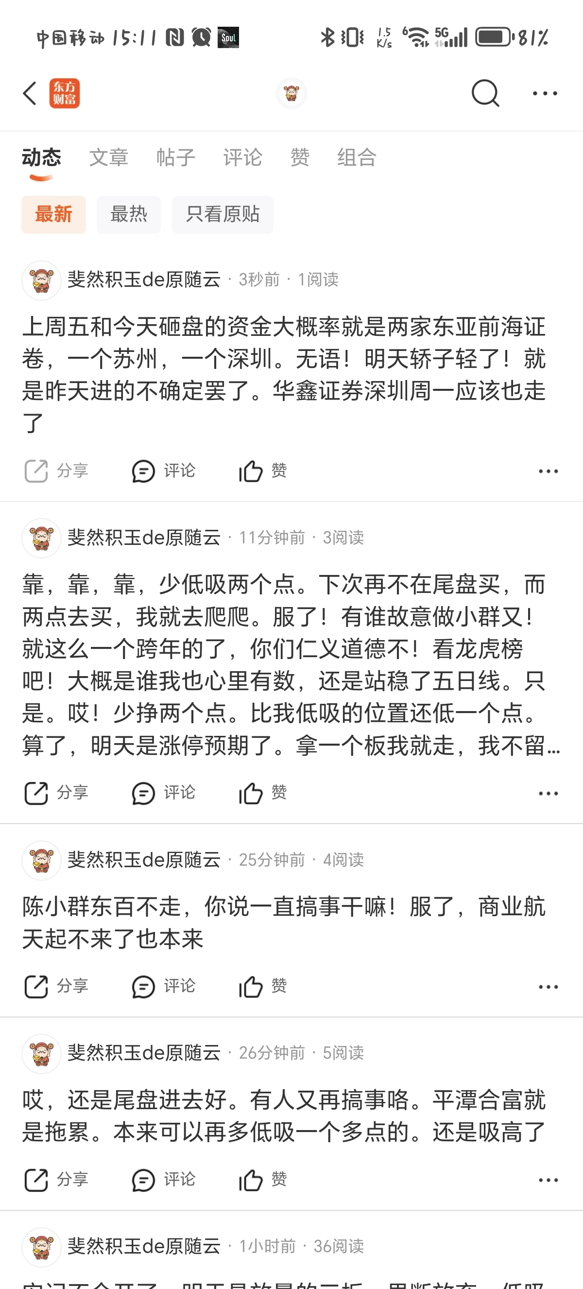 温馨提示: 1.根据《证券法》规定,禁止编造、传播虚假信息或者误导性信息,扰乱证券市场;2.用户在本社区发表的所有资料、言论等仅代表个人观点,与本网站立场无关,不对您构成任何投资建议。用户应基于自己的独立判断,自行决定证券投资并承担相应风险。《东方财富社区管理规定》