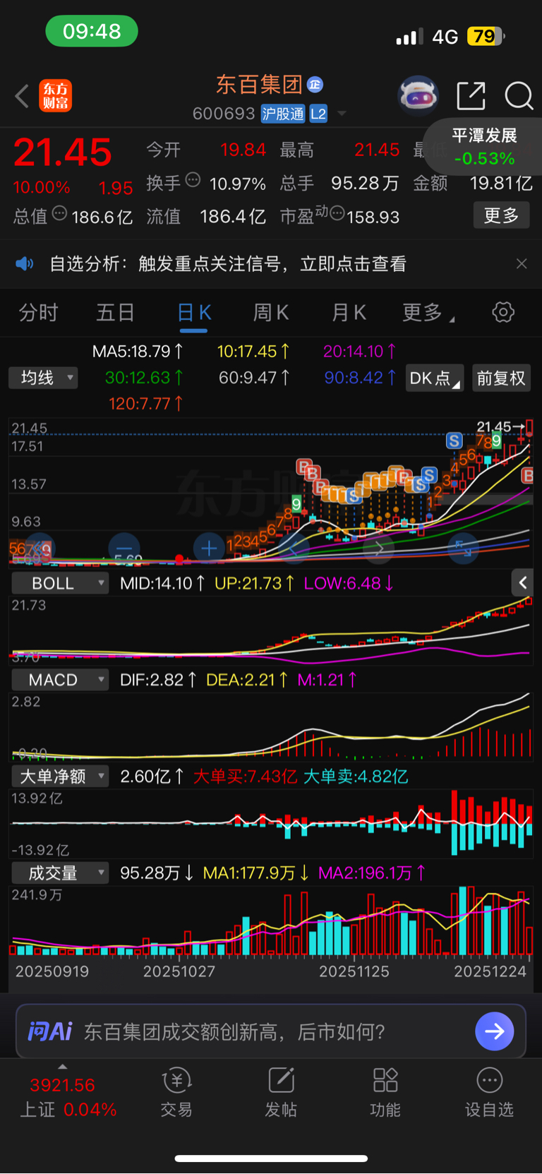 $东百集团(SH600693)$ 之前主升卖了,今天认错接回来