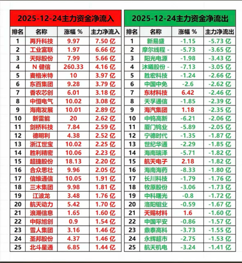 12.24周四 主力大资金 流向 TOP20!
