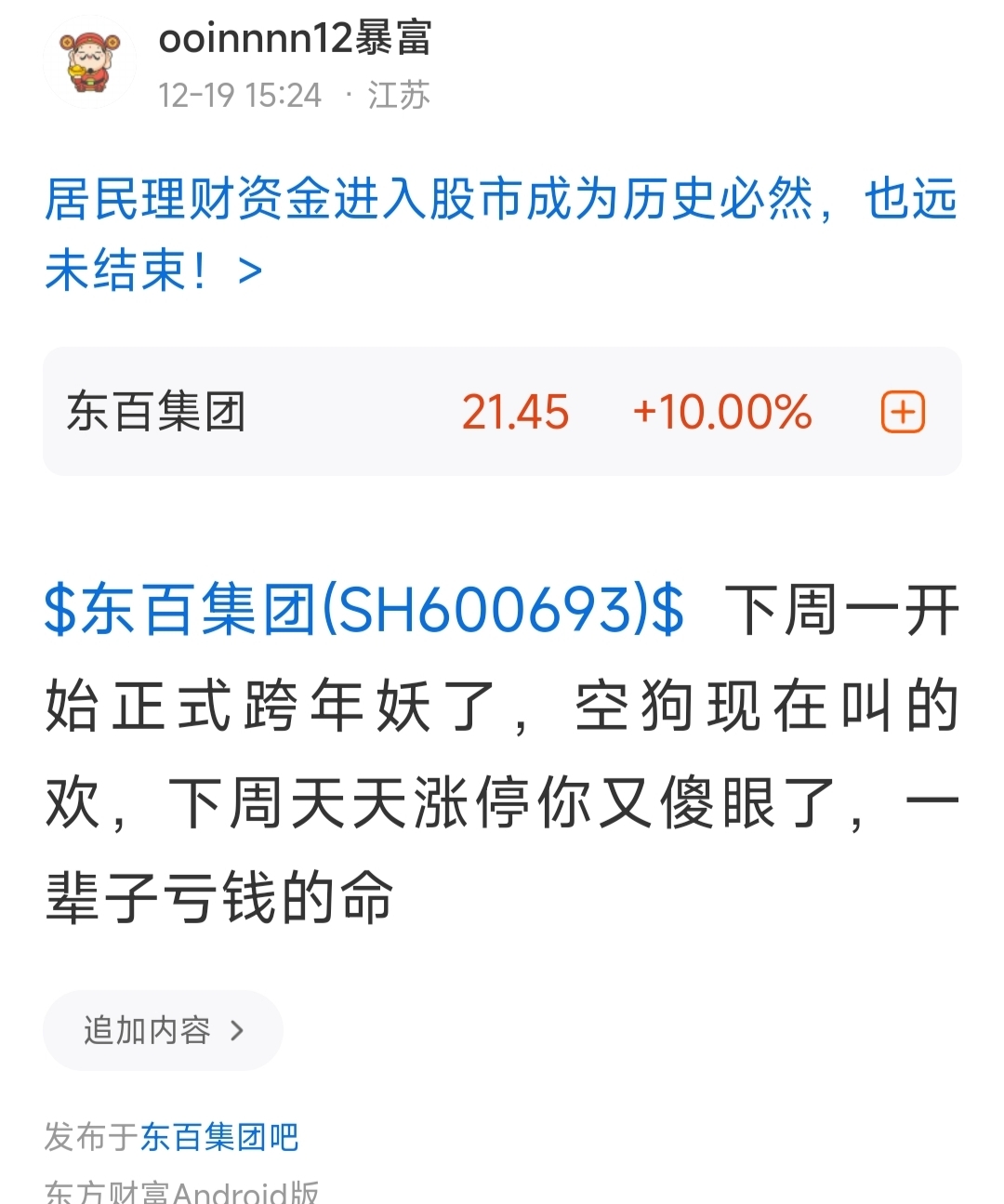 $东百集团(SH600693)$ 就问还有谁,周末那些唱空的蠢韭菜,搞不懂这么蠢为什么亏完不去要饭