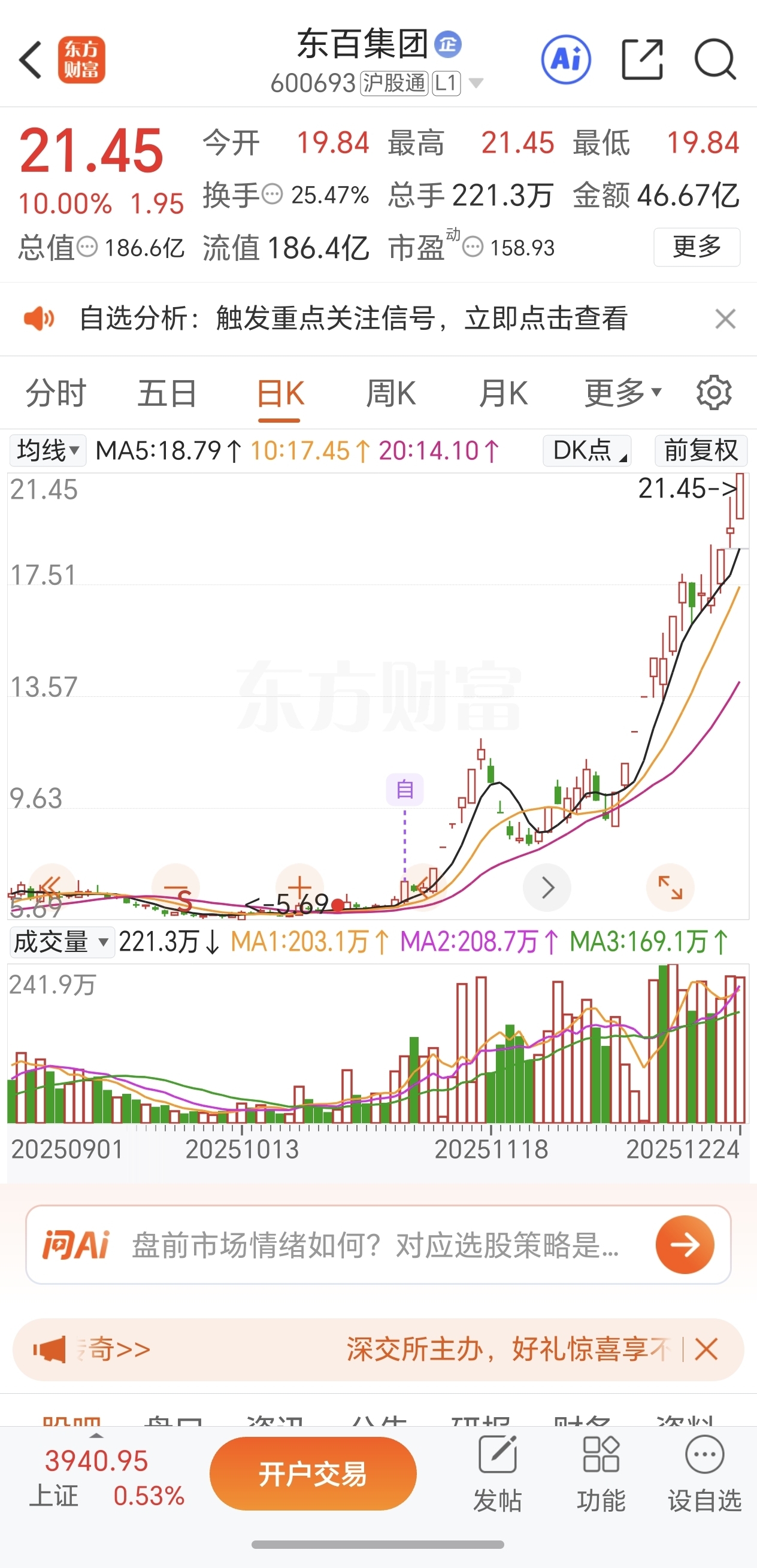东百从6块多到22了!一剑开天门