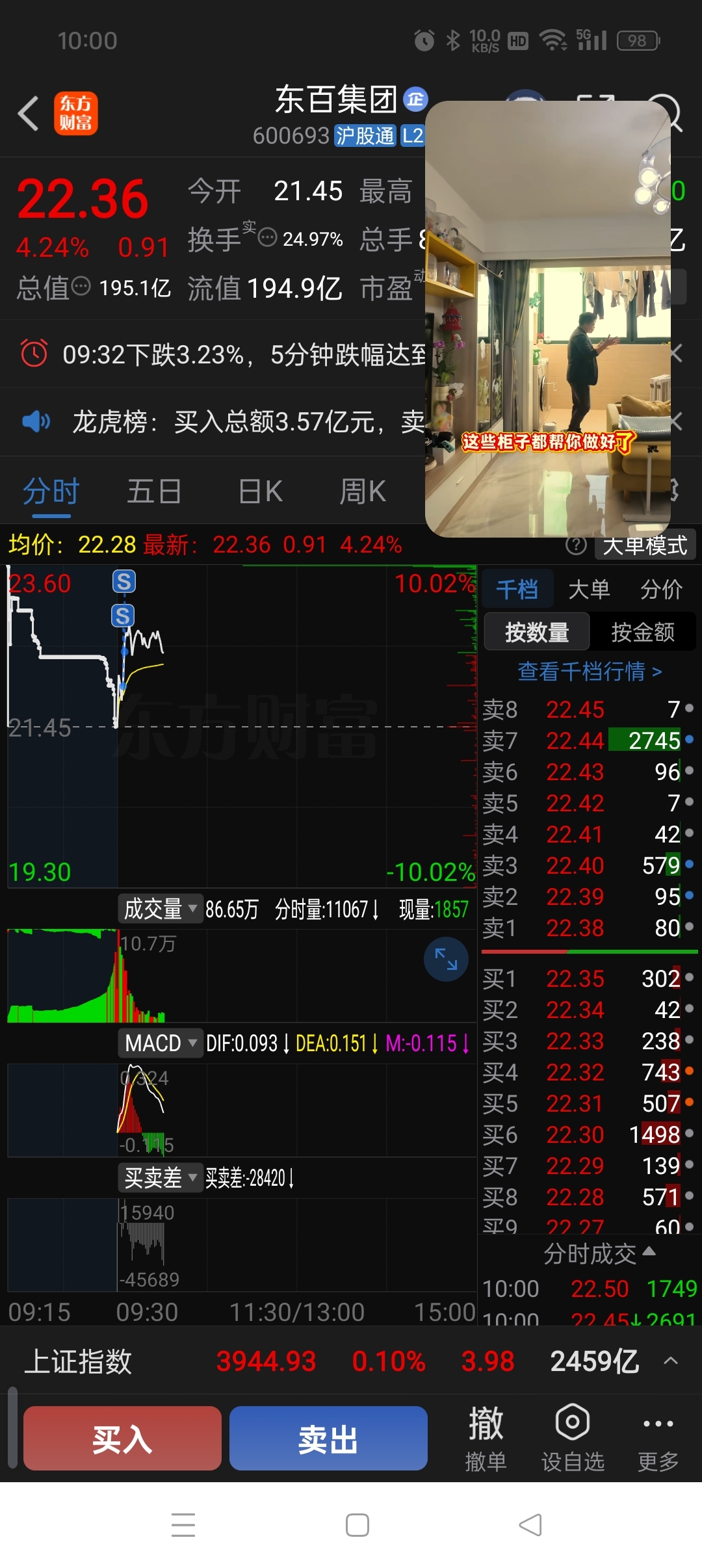 $东百集团(SH600693)$ 今天走势主动性不够,所以冲高出了,换航天动力