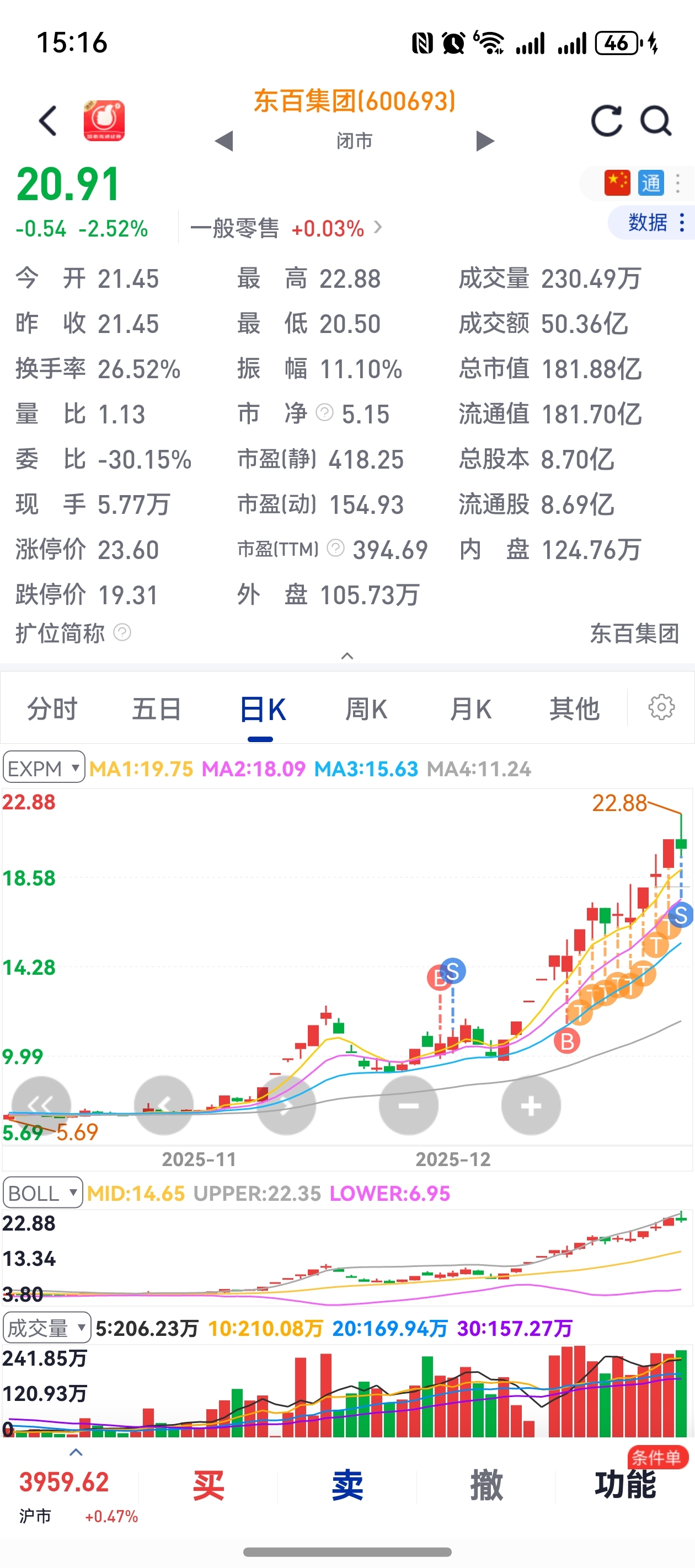 $东百集团(SH600693)$ 走了不知道对不对,留下的发财吧对子顶不敢t回去了