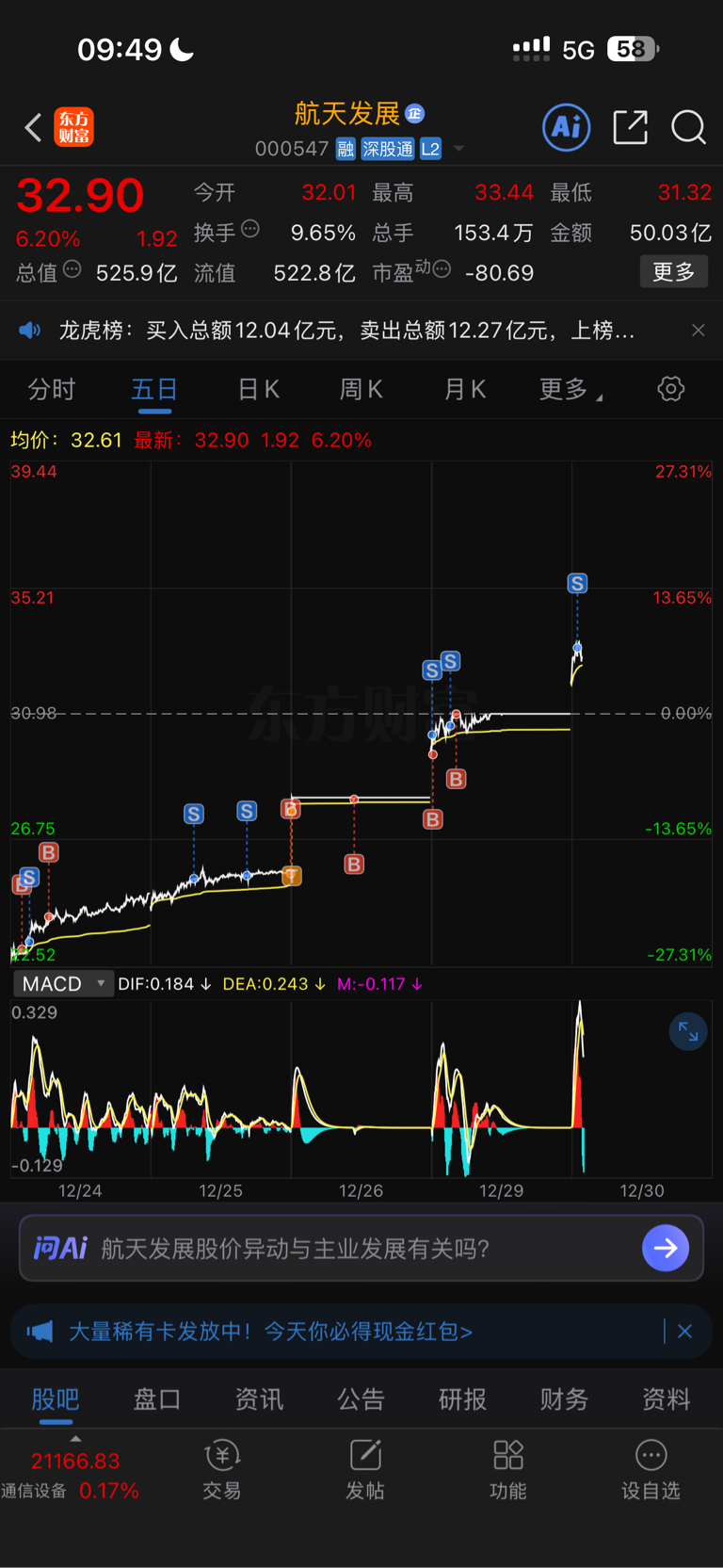 $东百集团(SH600693)$ &$平潭发展(SZ000592)$ $航天发展(SZ000547)$