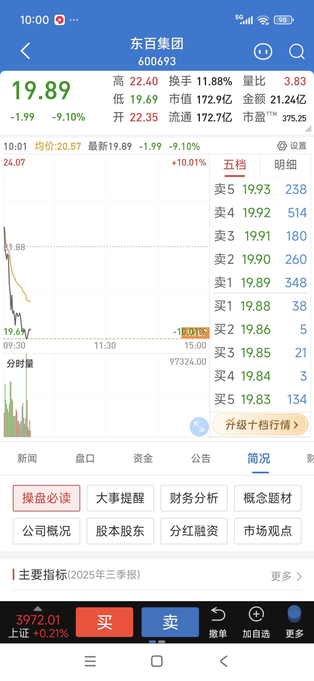 $东百集团(SH600693)$ 跌停进来了,兄弟们你们开盘都敢顶高开情愿亏十几个点,那我也陪大家一起站岗