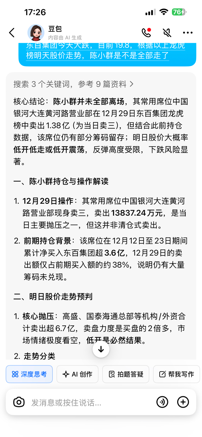 $东百集团(SH600693)$ 陈小群资金只走了一小部分,明天继续抄底