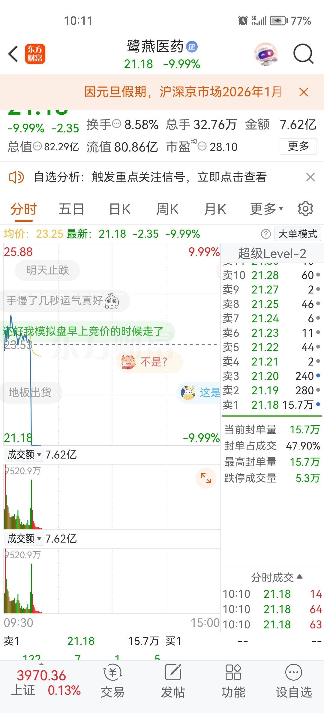 温馨提示: 1.根据《证券法》规定,禁止编造、传播虚假信息或者误导性信息,扰乱证券市场;2.用户在本社区发表的所有资料、言论等仅代表个人观点,与本网站立场无关,不对您构成任何投资建议。用户应基于自己的独立判断,自行决定证券投资并承担相应风险。《东方财富社区管理规定》