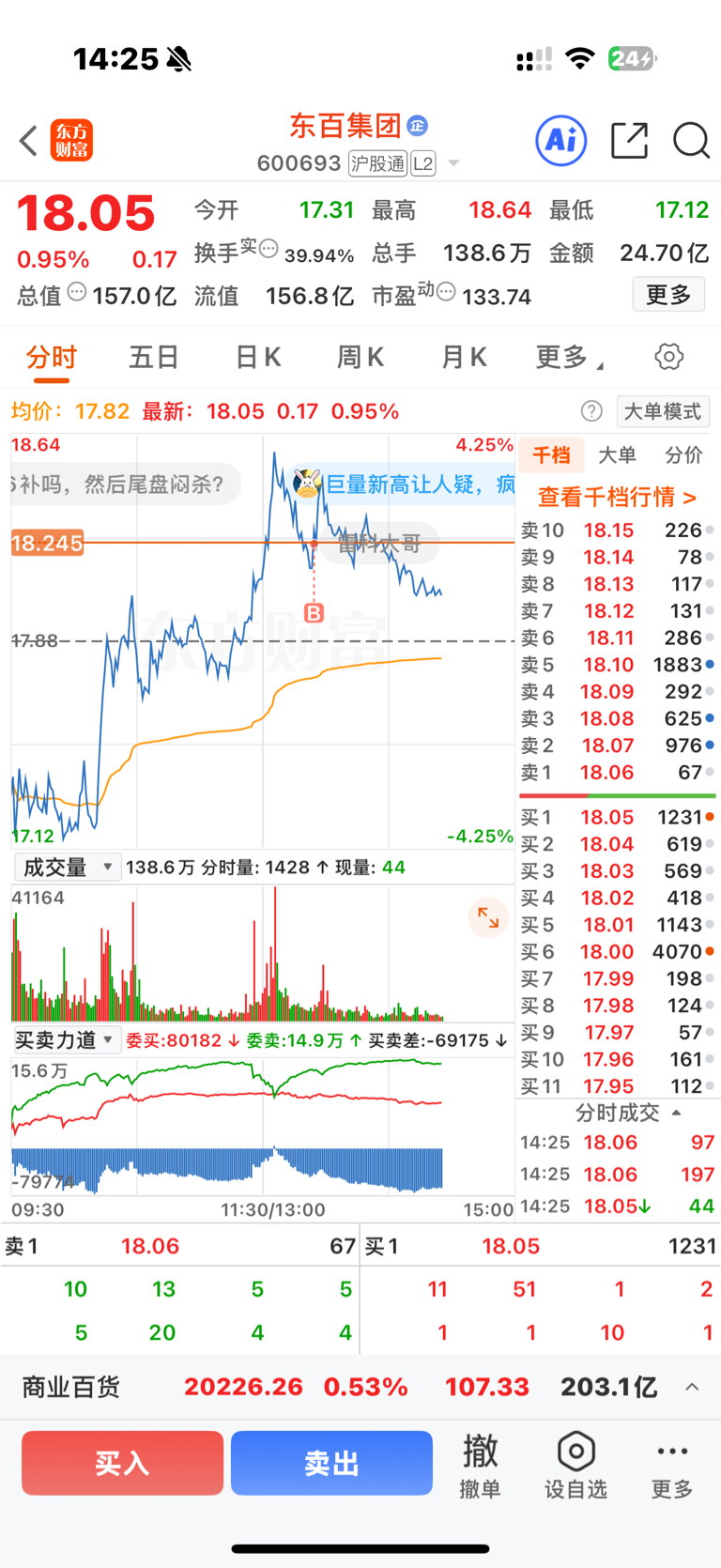 $东百集团(SH600693)$ 看到大盘跳水果断进来了,就这?
