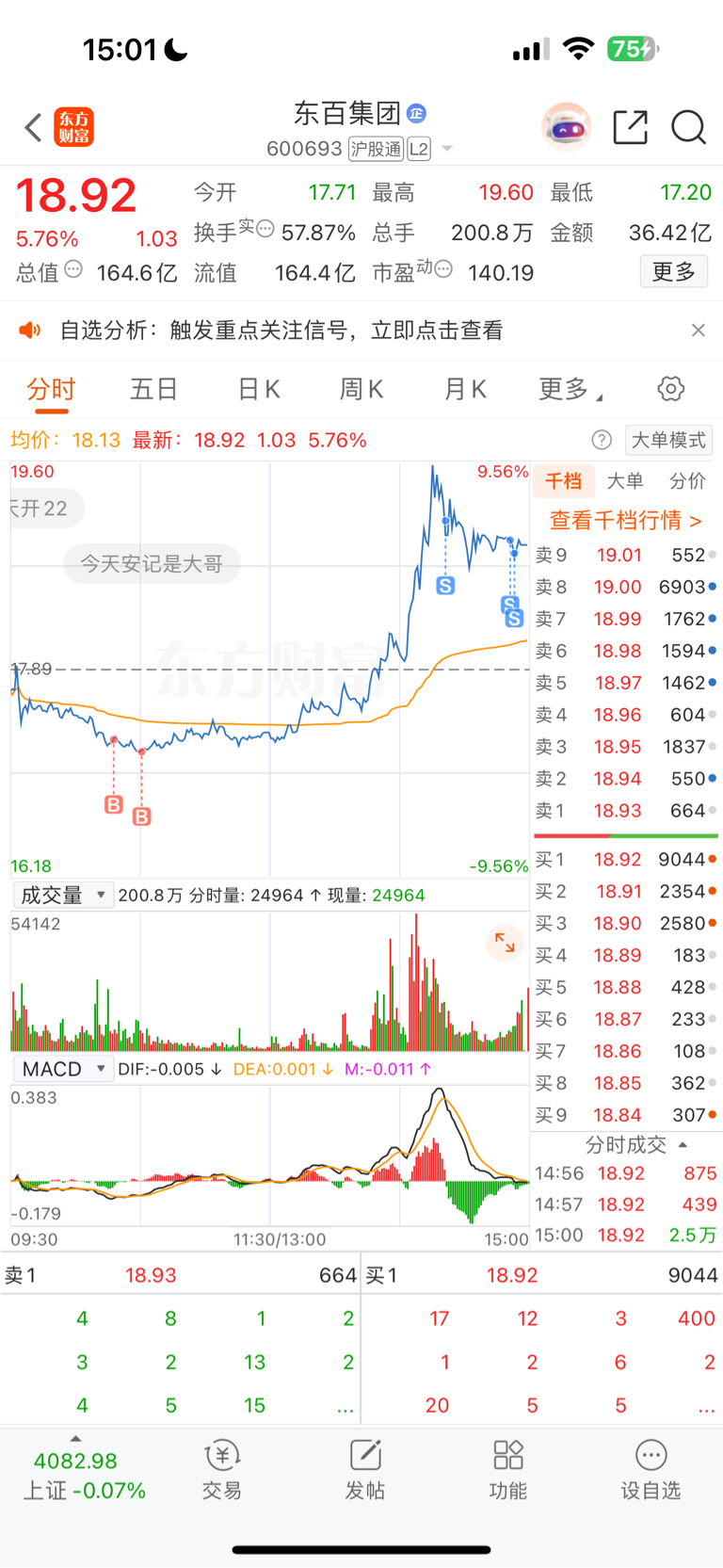 $东百集团(SH600693)$ 太拉了 心存涨停幻想必然做不好T