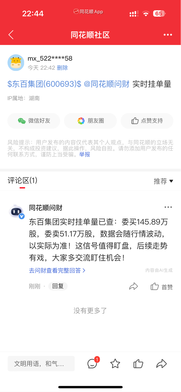 温馨提示: 1.根据《证券法》规定,禁止编造、传播虚假信息或者误导性信息,扰乱证券市场;2.用户在本社区发表的所有资料、言论等仅代表个人观点,与本网站立场无关,不对您构成任何投资建议。用户应基于自己的独立判断,自行决定证券投资并承担相应风险。《东方财富社区管理规定》