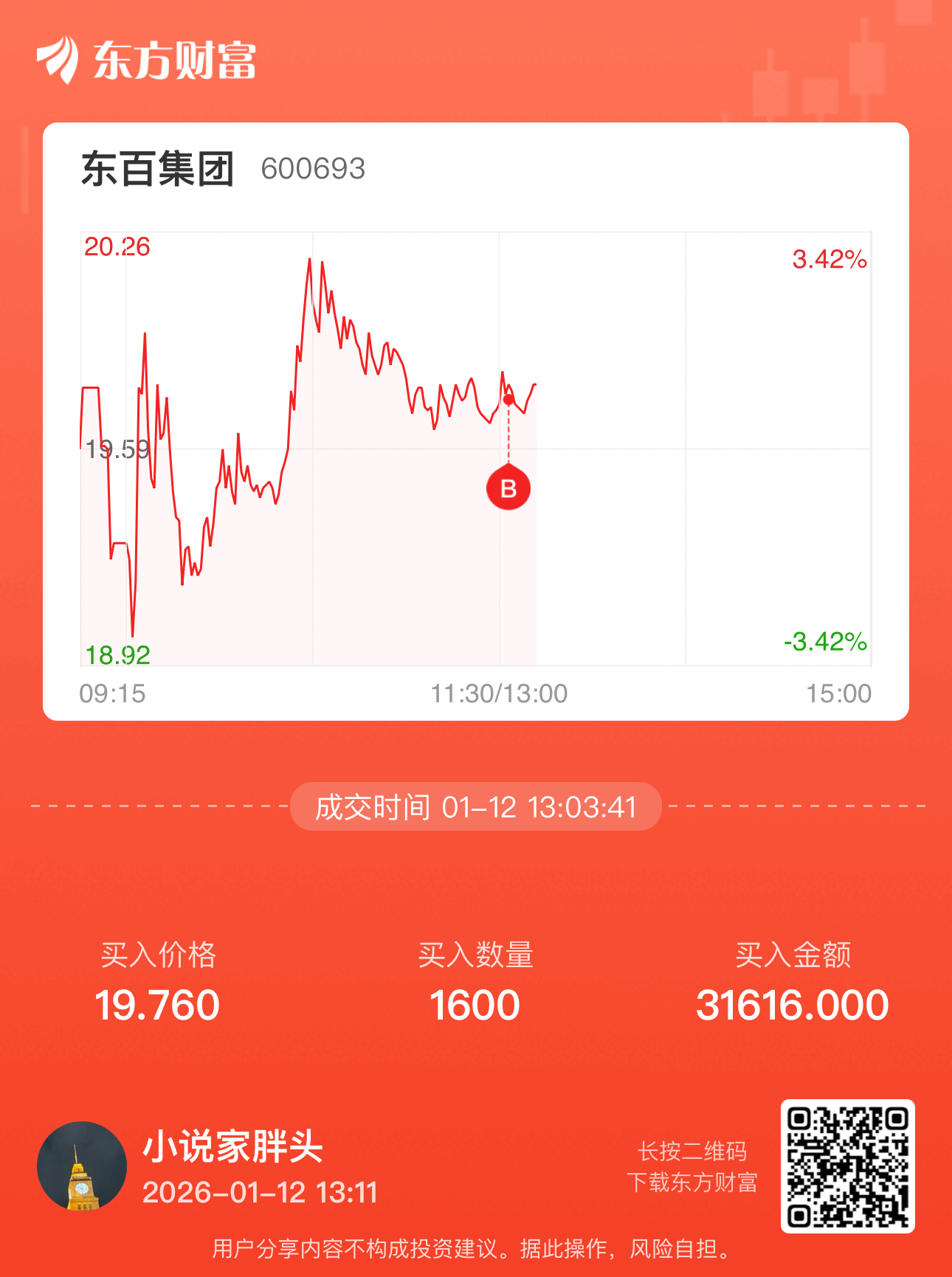 $东百集团(SH600693)$卖飞了茂业,我来助力你
