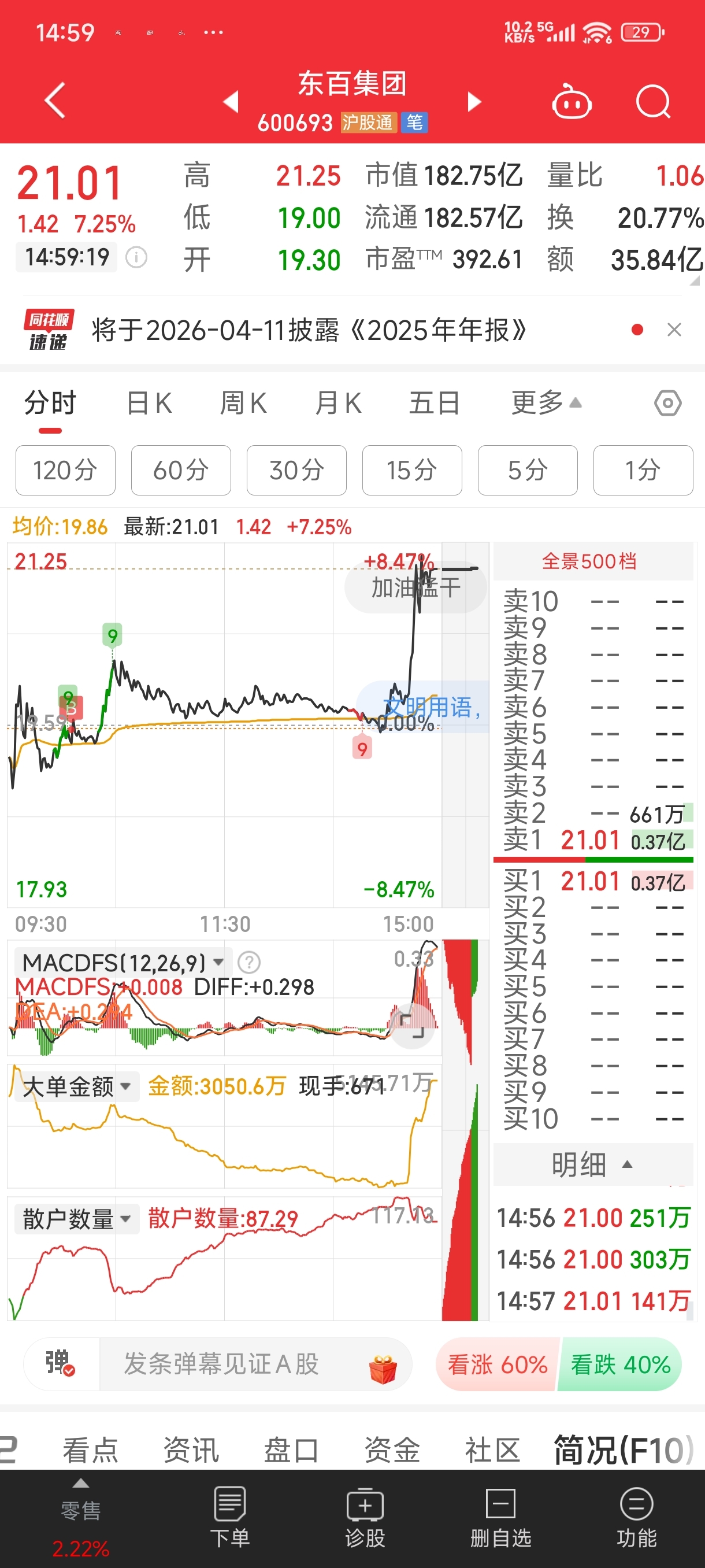 $东百集团(SH600693)$ 尾盘平潭,东百都起来了,商业航天资金有部分获利跑路怕明天分歧,蒙对了东百今天算是,但是尾盘拉伸的明天能给个冲高跑路机会吗