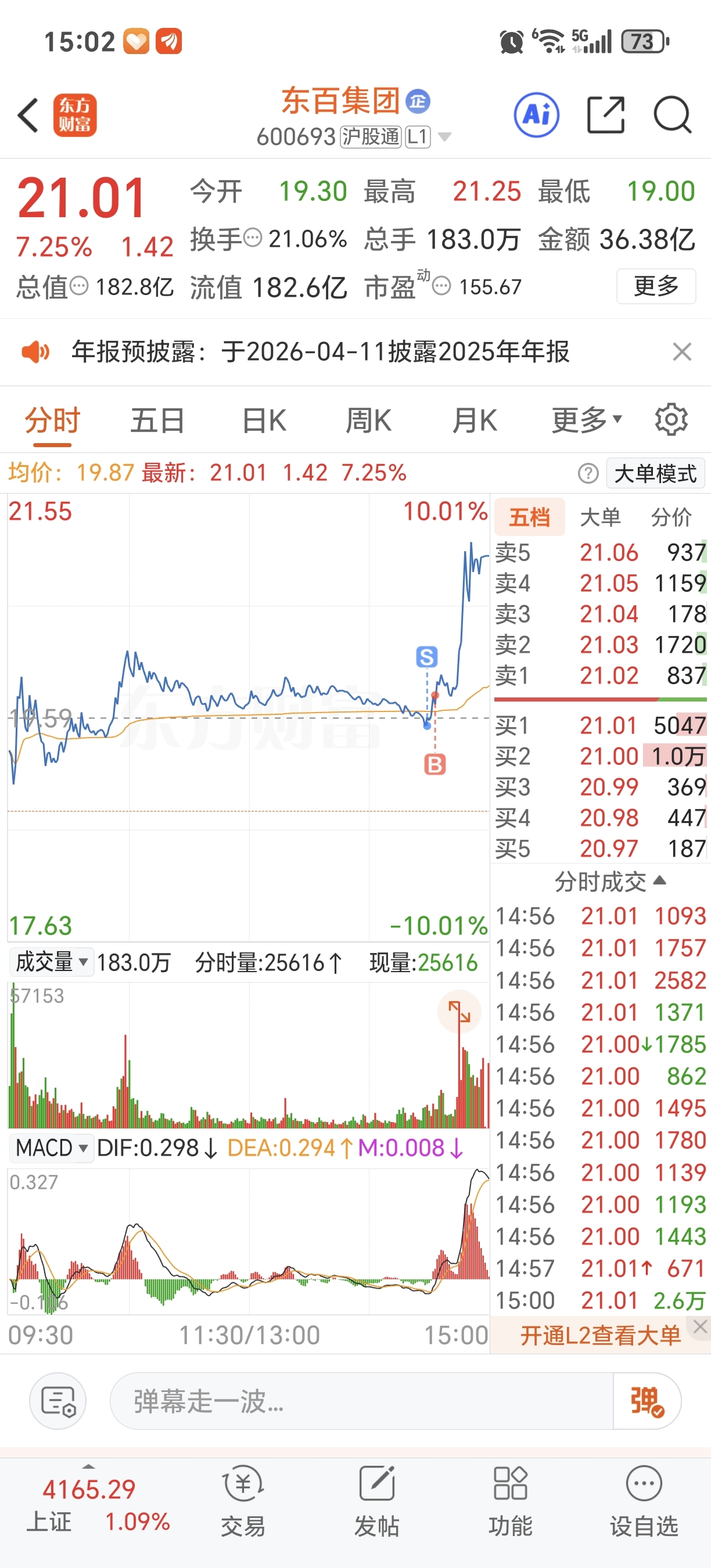 $东百集团(SH600693)$ 今天的SB战法,好在接回来