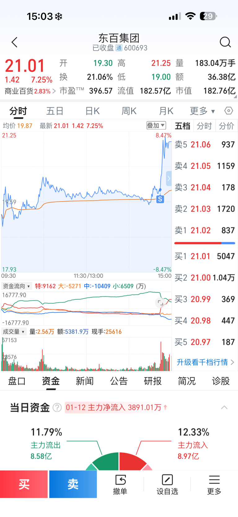 $东百集团(SH600693)$ 晚卖一点就涨了,真想骂人拉尾盘