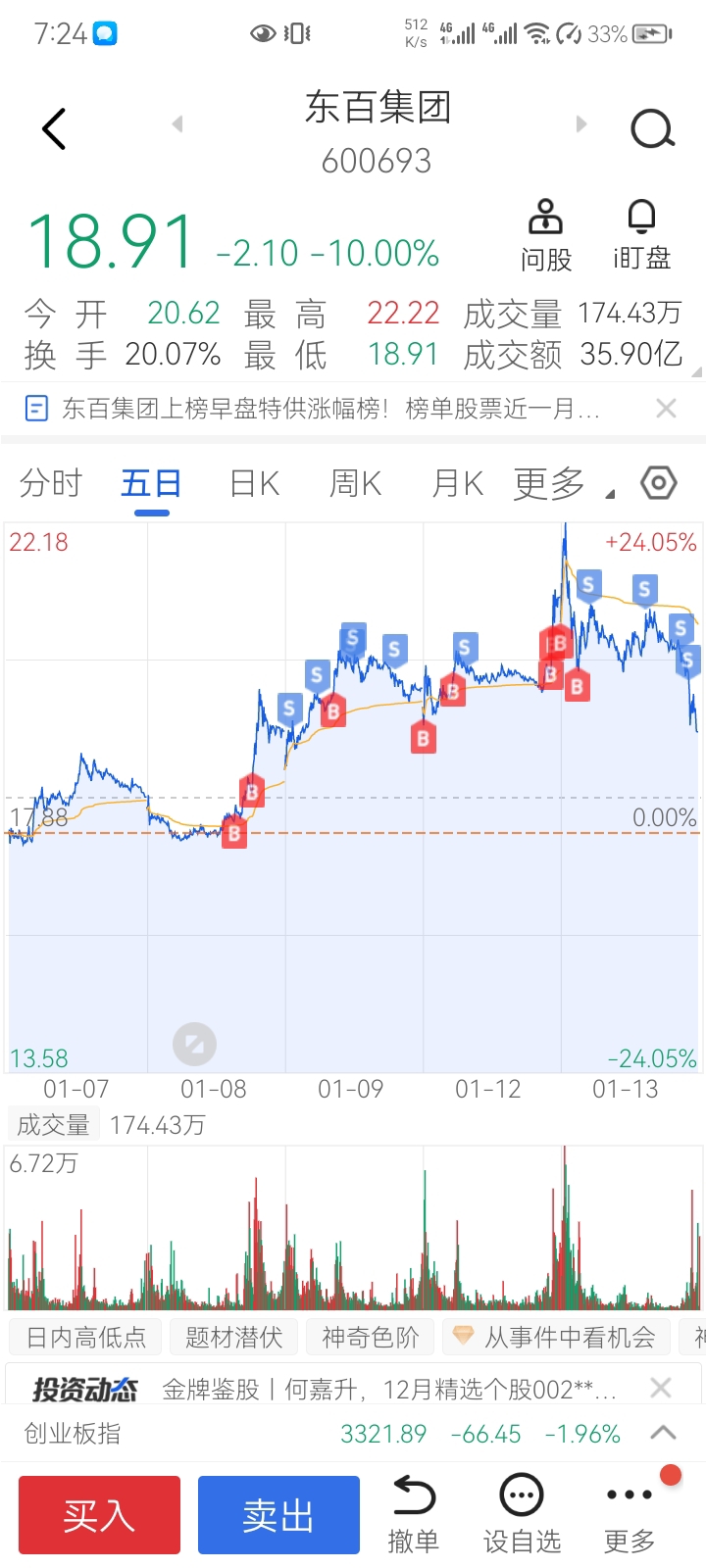 $东百集团(SH600693)$ 这几天辛苦在东百赚15个点,今天干了十个点,明天估计剩下的五个也还给它了