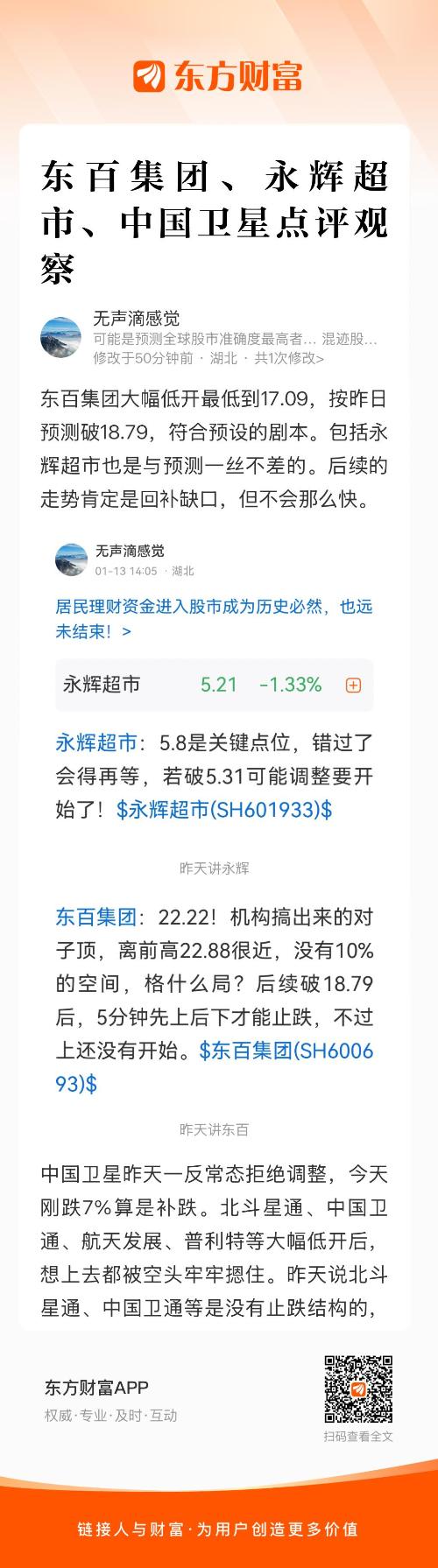 $东百集团(SH600693)$ $永辉超市(SH601933)$ $中国卫星(SH600118)$ #社区牛人计划# #强势机会# #炒股日记# #股市怎么看# @股吧话题 @社区精选