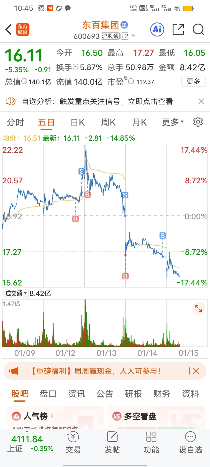 $东百集团(SH600693)$ 再来一个跌停吧,在哪不是消费呢