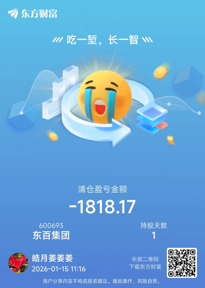 $东百集团(SH600693)$ 两天亏我10个点。。你真牛,割了