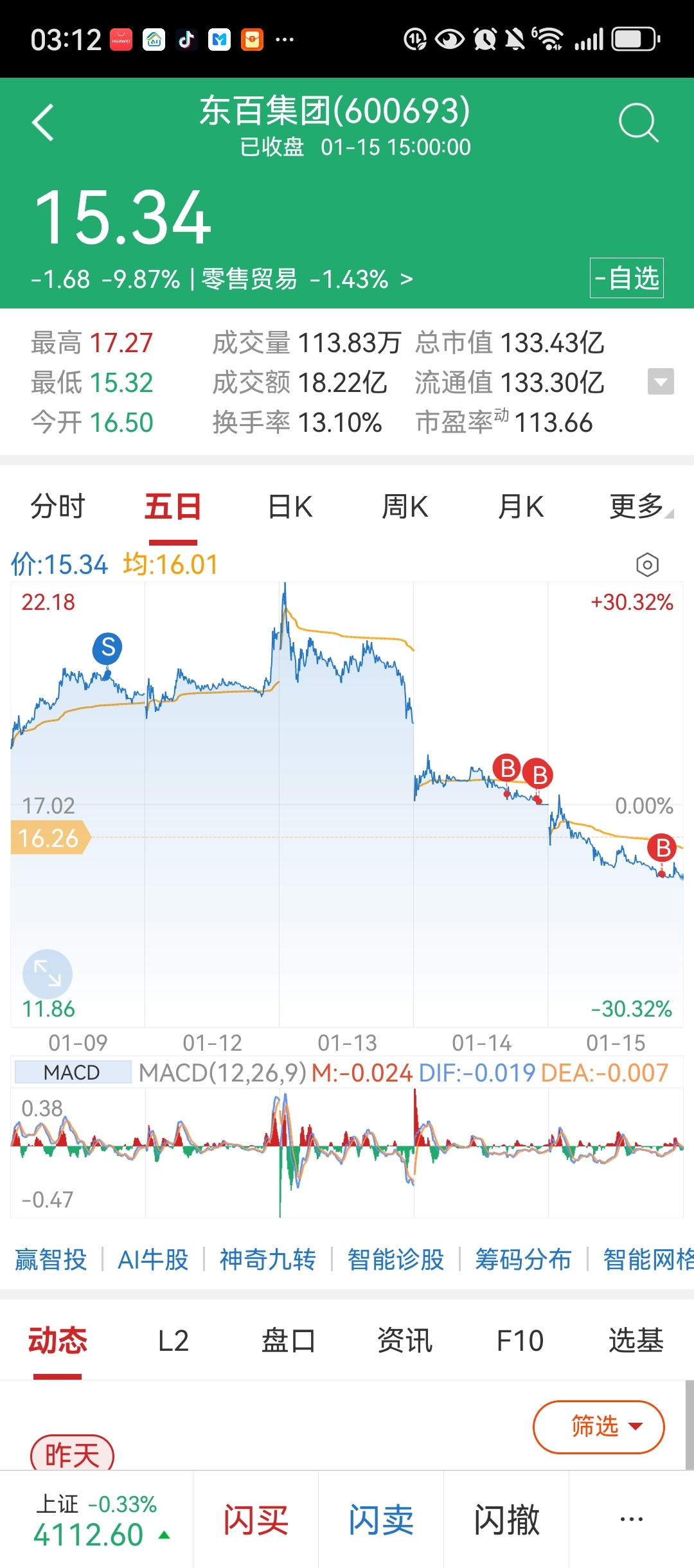 $东百集团(SH600693)$ 昨天尾盘加的,想着今天涨起来,哎想多了,今天买了一点,成本16.42,加油