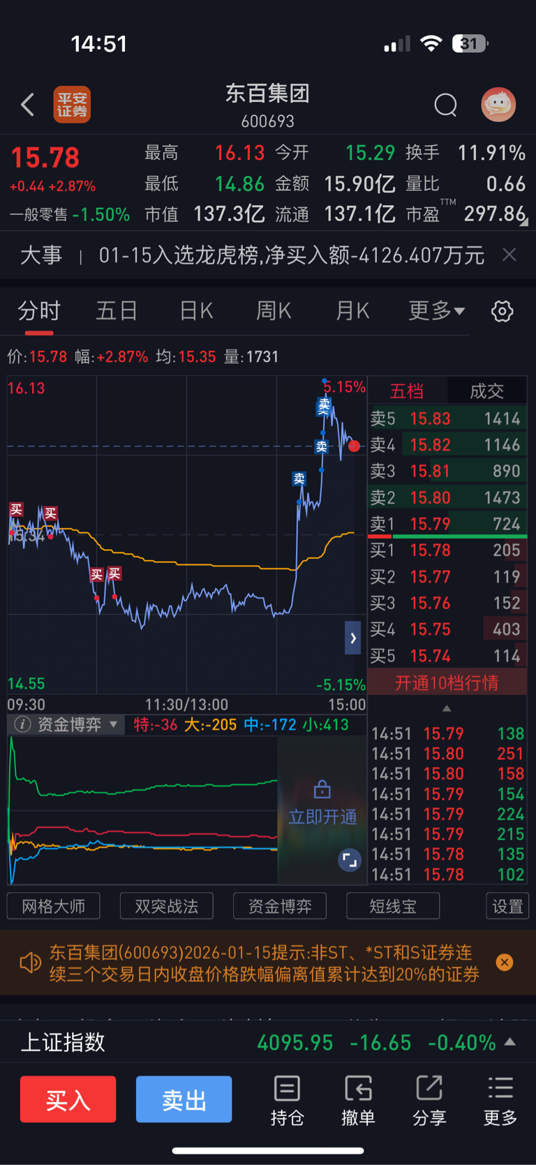$东百集团(SH600693)$ 昨天尾盘进 今天t一手