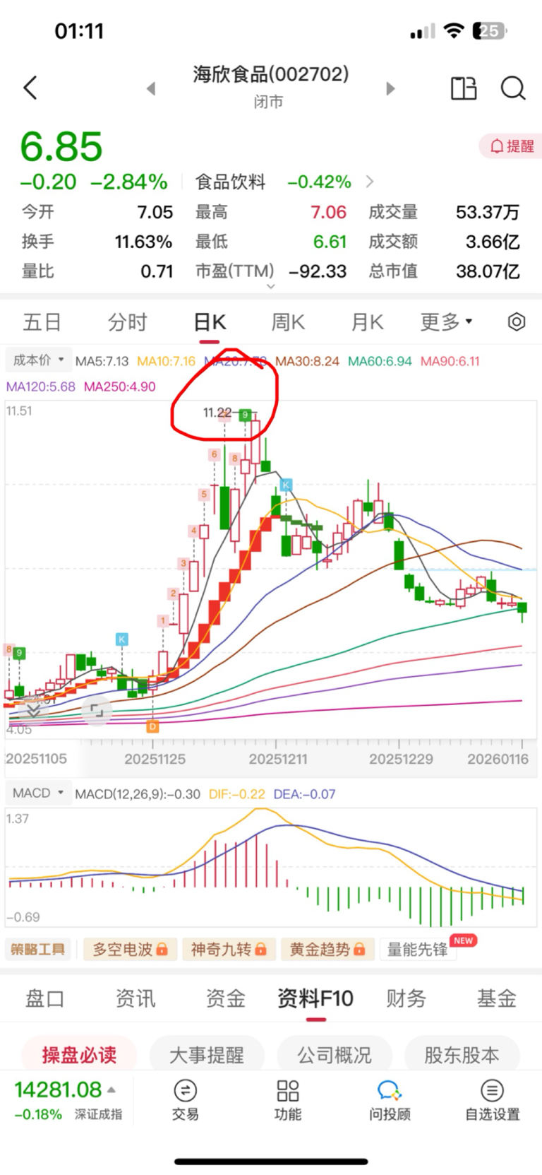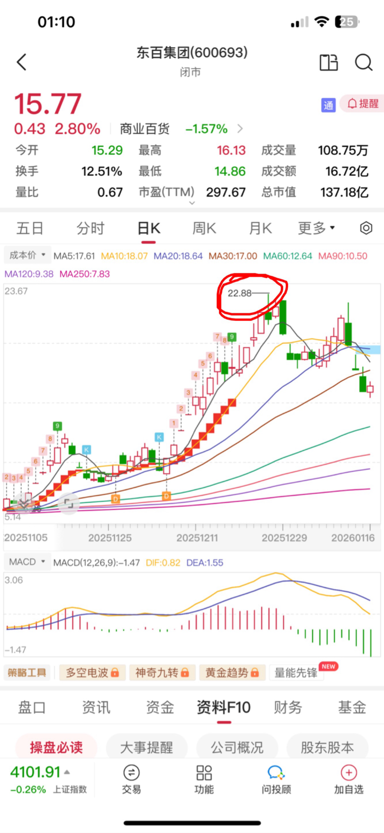 $东百集团(SH600693)$ 22.88、28.29,11.22都是对子顶