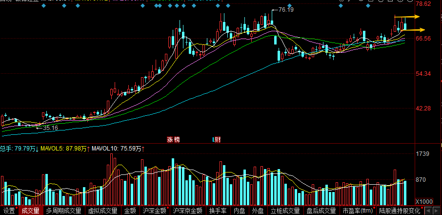 赣锋锂业:几日连续向上试探突破,虽冲高后有所回落,但上涨意愿强烈,上方压力特征明显。5日均线提供有效托举,经持续上涨后均线修复到位,已形成多头排列雏形。上周五股价小幅回踩,5日均线位置承接有力,支撑稳固且回调幅度有限,换手率保持健康水平。叠加碳酸锂价格近期持续上涨,虽上周五略有回调,但长期想象空间充足。当前距上方主要压力位仍有距离,上周五调整已有效释放压力,若今天跳空高开,反弹趋势将进一步。作为行业龙头,后续若接力跟进,有望吸引更多关注,尝试突破前高再创新高,下方支撑位关注68附近。